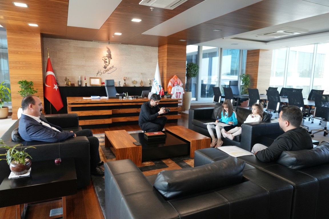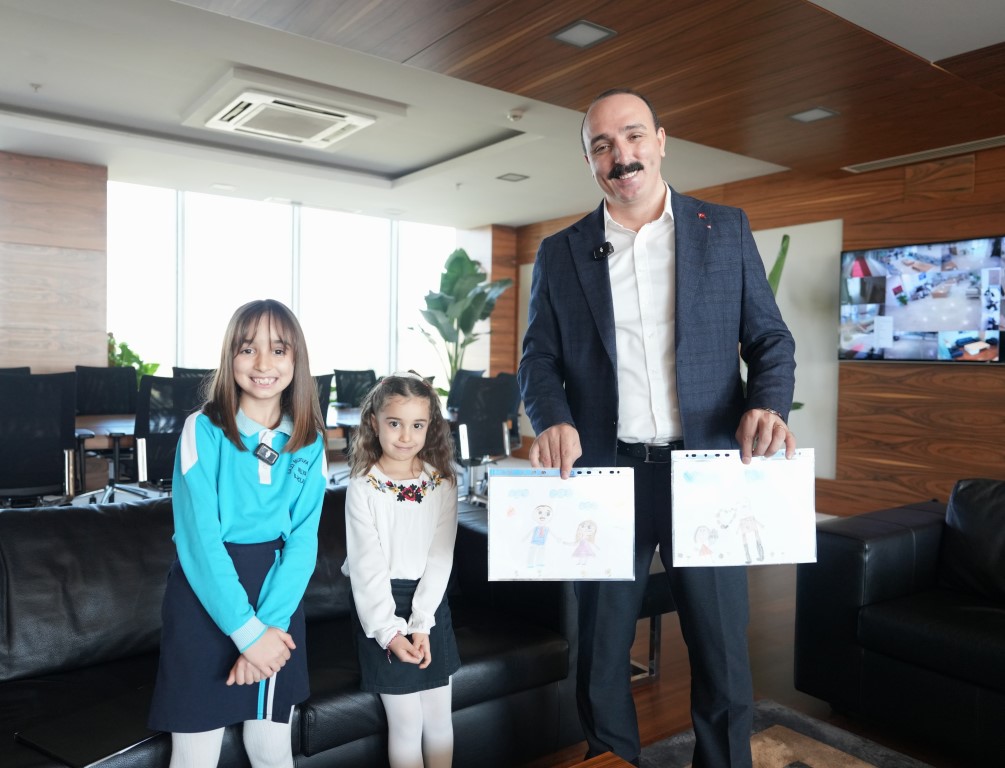 Konyaaltı Belediye Başkanı Cem Kotan, ilkokul 3. sınıf öğrencisi Selin Yıldırım, kardeşi Ece ve babaları Tolga Yıldırım’ı makamında ağırladı. Minik Selin ziyarette, Başkan Kotan’a merak ettiği soruları yöneltti. Samimi bir ortamda geçen görüşme sonunda Selin ve Ece, çizdikleri resimleri Başkan Kotan’a hediye etti. Başkan Kotan’ın yüzünü güldüren hediyenin ardından da Kotan, Selin ve Ece’ye oyuncak hediye ederek çocukları mutlu etti.