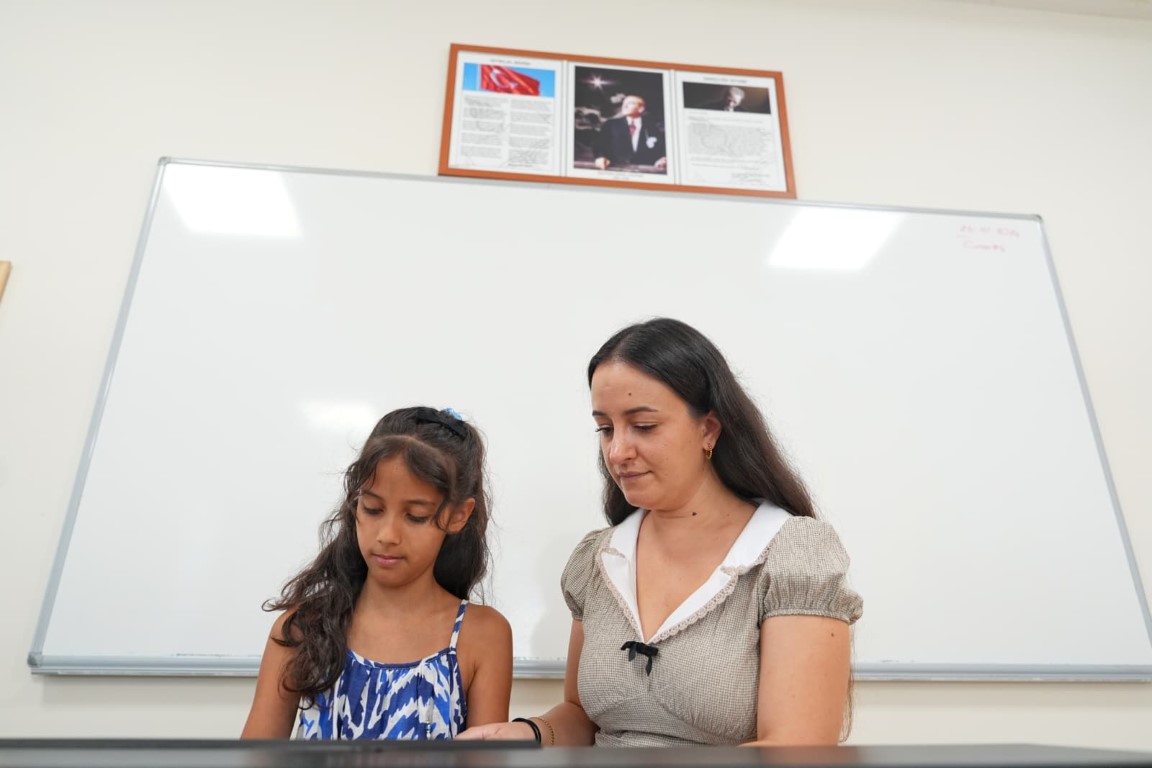 Akdeniz Üniversitesi Antalya Devlet Konservatuvarı Yarı Zamanlı Gitar Bölümü’nü kazanan Defne Segah Erarslan, “Konservatuvarda gitar bölümünü kazandım. Burada işitme dersleri gördük, solfejler okuduk. Hocalarımdan çok memnunum. Bizimle ilgileniyorlar. Derslerimiz çok güzel ve verimli geçiyor. 2 yıldır bu dersleri burada alıyorum. Bize yardımcı olan herkese teşekkür ediyorum” dedi. Defne Segah Erarslan’ın babası Bahtiyar Erarslan ise, “Sanatla ilgisi olan çocuklara destek veren Başkanımız Cem Kotan ve Konyaaltı Belediyesi’ne çok teşekkür ediyorum. Kızımın buraya gelmesinin ne kadar değerli olduğunu emeklerinin karşılığını aldığında, yani konservatuvarı kazandığında görmüş olduk. Herkesin bu eğitimleri almasını isterim” ifadelerini kullandı. Kızının mülakat sonucu eğitim almaya başladığını aktaran Erarslan, “Buranın konservatuvarın ilk adımı olduğunu duymuştuk, biliyorduk. Biz de denemek istedik. 2 yıl burada eğitim aldık. Öğretmenlerimiz çocuğuma müziği sevdirdiler, daha ilgi duymasını sağladılar ve sonucunu da konservatuvarı kazanarak almış olduk” diye konuştu.