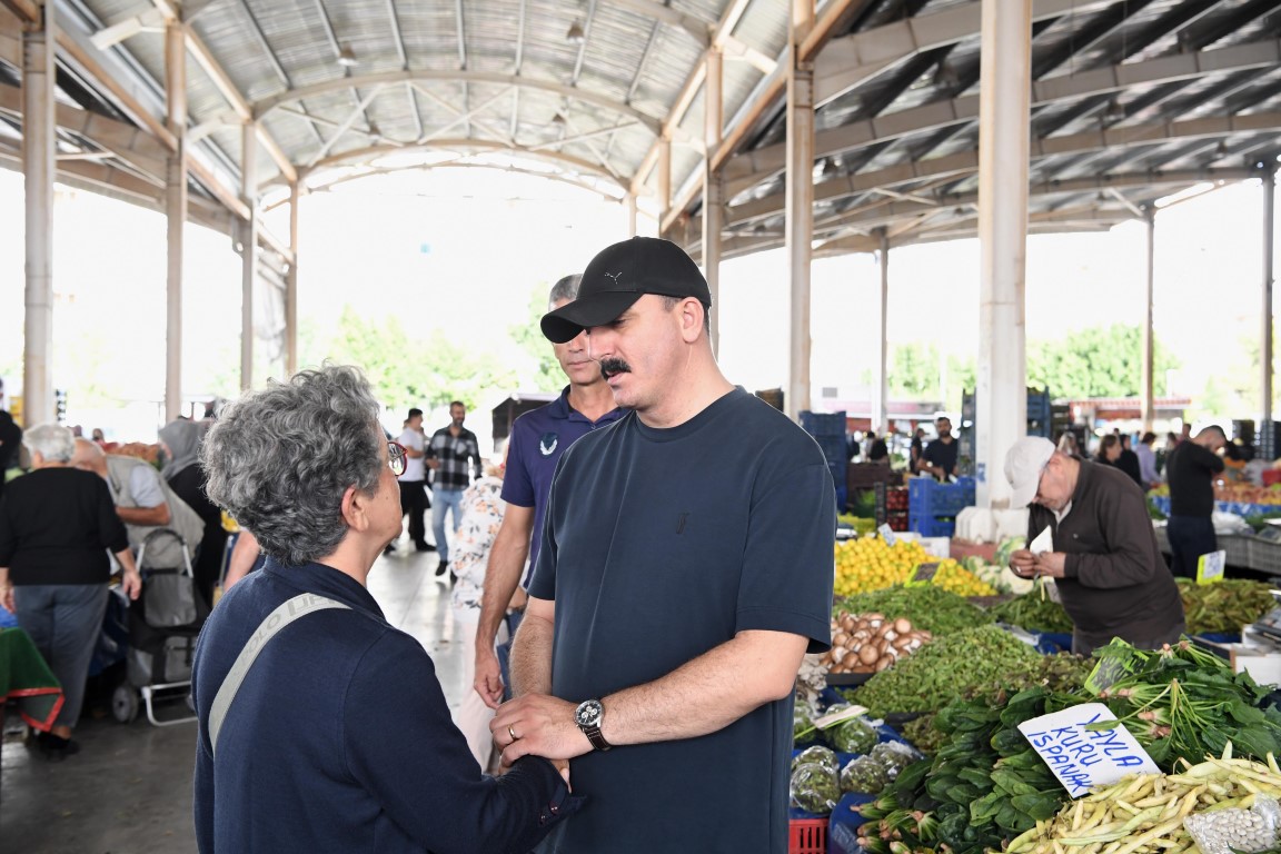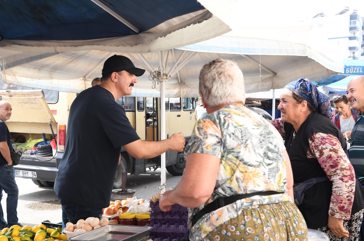 Pazar yeri ziyaretinin ardından konuşan Konyaaltı Belediye Başkanı Cem Kotan, “Ülkemizde yaşanan ekonomik sıkıntılardan şüphesiz ki esnafımız da etkileniyor. Bizler bunun farkındayız. Mümkün oldukça kendileriyle buluşup taleplerini dinliyor, çözüm arıyoruz. Esnafımızla daima bir aradayız. Konyaaltı’mızı birlikte yönettiğimizi her ortamda yineliyorum. Bu anlayıştan asla vazgeçmeyeceğiz. Tüm kıymetli pazar esnafımıza bol kazançlar diliyorum” ifadelerini kullandı.