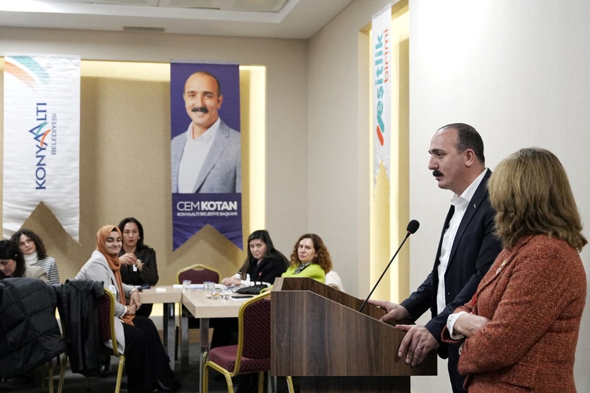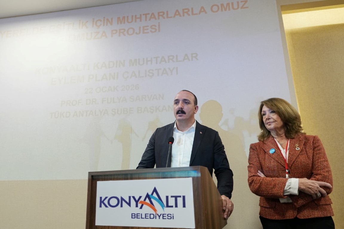 Konyaaltı Belediye Başkanı Cem Kotan’ın eşit yaşama verdiği önem ve ‘Eşitlik Yerelde Başlar’ ilkesiyle çalışmalarını sürdüren Konyaaltı Belediyesi anlamlı bir çalıştaya ev sahipliği yaptı. Konyaaltı Belediyesi Eşitlik Birimi ile Türk Üniversiteli Kadınlar Derneği (TÜKD) iş birliğinde, ‘Yerelde Eşitlik İçin Muhtarlarla Omuz Omuza’ projesi kapsamında düzenlenen ‘Konyaaltı Kadın Muhtarlar Eylem Planı Çalıştayı’ Konyaaltı Belediyesi Ana Hizmet Binası’nda gerçekleştirildi. Çalıştaya Konyaaltı Belediye Başkanı Cem Kotan’ın yanı sıra, TÜKD Antalya Şube Başkanı Fulya Sarvan, Konyaaltı Belediyesi Meclis Üyeleri, Konyaaltı’nda görev yapan kadın muhtarlar ve ilgili kurumların temsilcileri katıldı. Çalıştay, Başkan Kotan ve TÜKD Antalya Şube Başkanı Sarvan’ın açılış konuşmalarının ardından gerçekleştirilen sunumla sona erdi.