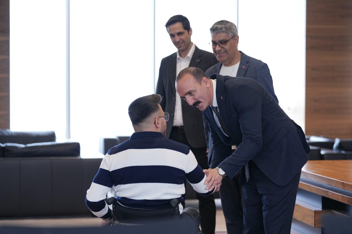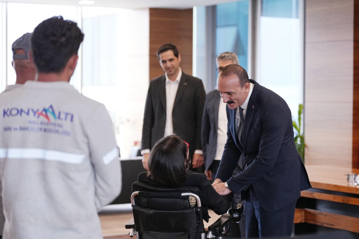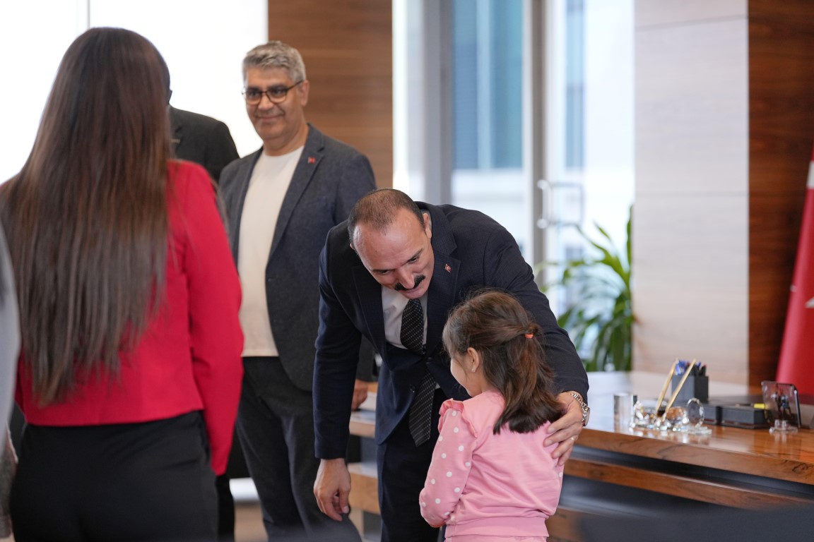 Konyaaltı Belediye Başkanı Cem Kotan, Ramazan Bayramı öncesinde Konyaaltı Belediyesi’nde görev yapan personelle buluşarak bayramlarını kutladı. Konyaaltı Belediyesi Ana Hizmet Binası’nda gerçekleşen bayramlaşmada Başkan Kotan’a Belediye Başkan Yardımcıları eşlik etti. Bayramlaşmada ayrıca bir personelin çocuğu hazırladığı resmi Kotan’a hediye etti. Konyaaltı için emek veren tüm personele teşekkürlerini ileten Kotan, “Konyaaltı’mız için gece gündüz demeden var gücüyle çalışan tüm personelimizin Ramazan Bayramı’nı kutluyorum” dedi.
