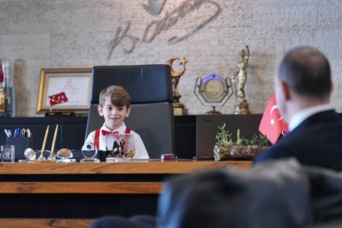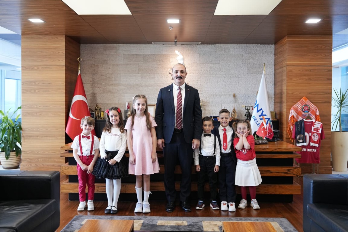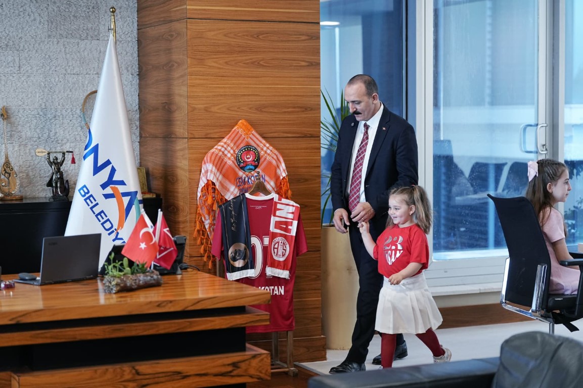 Konyaaltı Belediye Başkanı Cem Kotan, 23 Nisan Ulusal Egemenlik ve Çocuk Bayramı dolayısıyla Konyaaltı Belediyesi’nde gerçekleştirilen programda minikleri makamında ağırladı. Kotan, program kapsamında Başkanlık makamını miniklere devretti. Başkanlık makamına oturan çocuklar, geleceğe dair hayallerini dile getirdi. Çocuklar ayrıca, Konyaaltı’nda yapılmasını istedikleri talepleri de Kotan’a iletti. Başkan Cem Kotan ayrıca, çocuklara birer boyama kitabı hediye etti ve çocuklardan hayal ettikleri Türkiye’yi çizmelerini istedi.