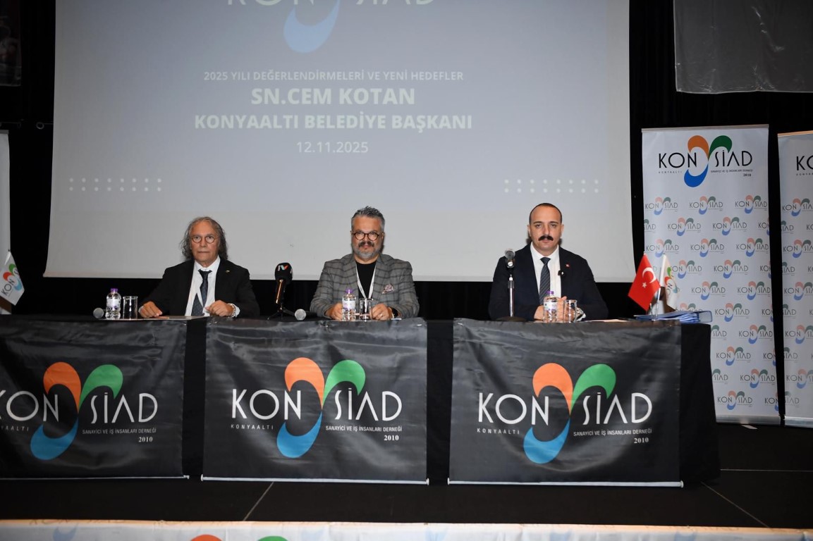Konyaaltı Belediye Başkanı Cem Kotan, Konyaaltı Sanayici ve İş İnsanları Derneği’nin (KONYSİAD) düzenlediği Kasım Ayı Toplantısı’na katıldı. Başkan Kotan, ‘2025 Yılı Değerlendirmeleri ve Yeni Hedefler’ konulu toplantıda, göreve geldikleri günden bu yana gerçekleştirdikleri çalışma ve planladıkları projeleri iş insanlarıyla paylaştı. Moderatörlüğünü Ali Buldu’nun yaptığı toplantıya Başkan Cem Kotan’ın yanı sıra Konyaaltı Kaymakamı Rahmi Köse, Cumhuriyet Halk Partisi Parti Meclisi Üyesi Niyazi Şen, BAKSİFED Başkanı Mustafa Cengiz, Konyaaltı Belediyesi Başkan Yardımcıları, Birim Müdürleri ve Konyaaltı’nda görev yapan muhtarlar ile KONYSİAD üyeleri katıldı. Türkiye’deki ekonomik tablonun öngörülebilir belediyeciliğin bazı zamanlarda önüne geçtiğini vurgulayan Kotan, KONYSİAD üyelerinin daima yanında olduğunu ve sıklıkla bir araya gelmekten mutluluk duyduğunu kaydetti. Toplantıda söz alan KONYSİAD Başkanı İlhami Kaplan ise katılımcı belediyecilik anlayışından dolayı ve Konyaaltı’nı birlikte yönetme sözünü tuttuğu için Başkan Kotan’a teşekkür etti.