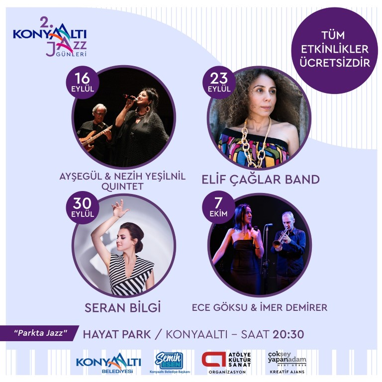 Konyaaltı Belediyesi’nin ilçenin gözbebeği HayatPark’ta gerçekleştirdiği Konyaaltı Caz Günleri cumartesi akşamı Ayşegül & Nezih Yeşilnil Quintet konseri ile başlıyor. Bu yıl ikincisi düzenlenen ve geleneksel hale getirilmesi amaçlanan etkinlikte caz müziğin sevilen isimleri sanatseverlerle buluşacak.