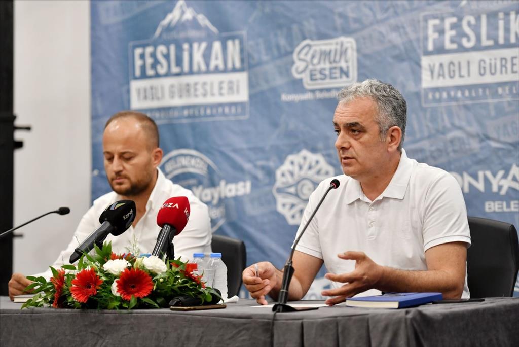 Bu yıl 25’incisi düzenlenecek olan Uluslararası Feslikan Yağlı Güreşleri öncesinde Konyaaltı Belediye Başkanı Semih Esen, Güreş Ağası Mustafa Koç ile Nazım Hikmet Fuar ve Kongre Merkezi’nde basın toplantısı düzenledi. 30 Temmuz Pazar günü yağlı pehlivan güreşlerinin sabah saatlerinde alt boylar düzeyinde başlayacağını ifade eden Başkan Esen, öğle saatlerine doğru da başpehlivanların çayıra çıkacağını aktardı. Esen, konuşmasına şöyle devam etti: “Toplamda 1000’in üzerinde pehlivanımızın katılacağı organizasyonda 46 başpehlivan yer alacak. Güzel bir organizasyon olmasını diliyorum. Sportmenlik ve dostluğun ön planda olduğu, seyir zevki yüksek karşılaşmaların olduğu bir organizasyon olmasını diliyorum.