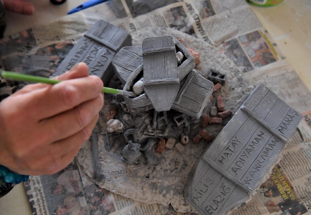 Yabancı dilden yağlı boyaya, manikürden el işi sanatlarına birçok alanda devam eden kurslardan seramik branşında eğitim alan Naile Sonay Demir, el emeğiyle ürettiği ‘deprem felaketi’ temalı eseriyle dikkat çekti.