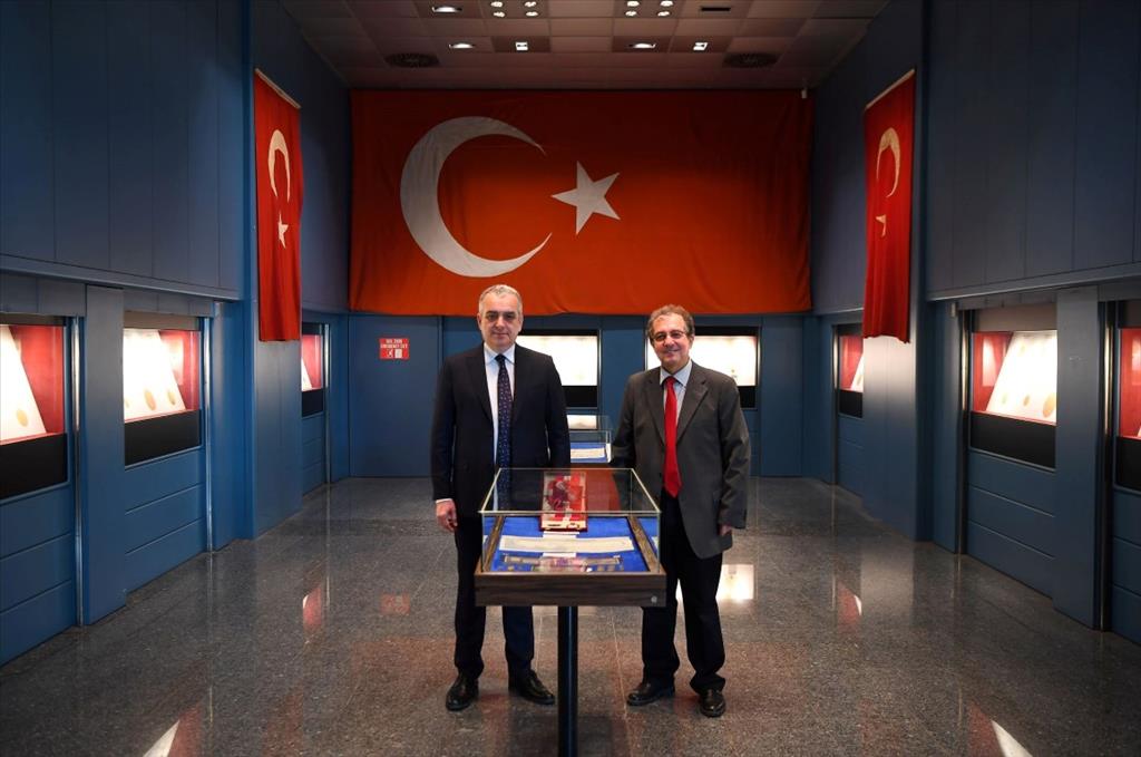 Konyaaltı Belediye Başkanı Semih Esen, Antalya Müzesinde bulunan ve Cumhuriyetin 100. yılı dolayısı ile hazırlanan koleksiyon bölümünü ziyaret etti. Müzede yer alan tarihi eserleri rehber eşliğinde inceleyen Başkan Esen, daha sonra Av. Bahadır Kalaycı’nın uzun uğraşlar sonucunda bir araya getirdiği Türkiye Cumhuriyeti’nin kuruluş dönemine ait eserleri ziyaret etti. Esen, koleksiyonda yer alan para, madalya, nutuk, Türkiye haritası ve Türk bayrağını inceledi.