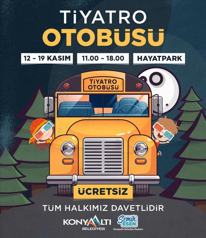 Konyaaltı Belediyesi, 12-19 Kasım tarihleri arasında HayatPark’ta Tiyatro Otobüsü etkinliği düzenleyecek. Otobüs içerisinde gün boyunca sürecek tiyatro oyunlarıyla çocuklar ara tatilin keyfini doyasıya yaşayacak. 1 hafta boyunca her gün 11.00-18.00 saatleri arasında Neşeli Kulaklar Yarışıyor ve Tombul Lüfer Göç Ediyor adlı oyunların sahneleneceği Tiyatro Otobüsü, 2-14 yaş aralığındaki her yaştan çocuk misafirleri ağırlayacak.