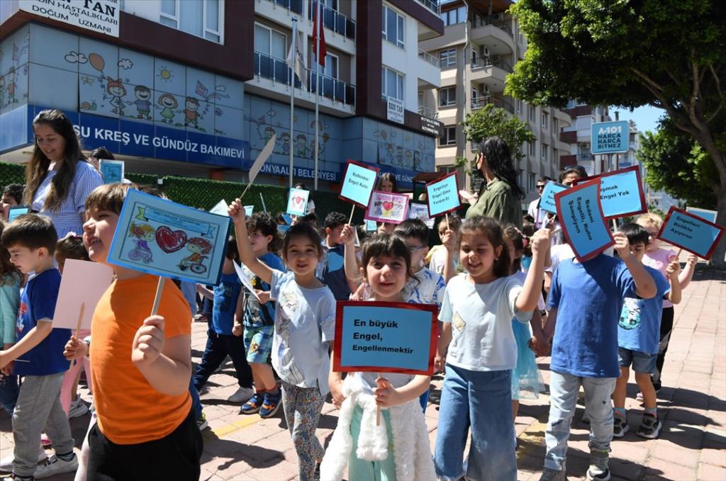 Konyaaltı Belediyesi Gürsu Kreş ve Gündüz Bakımevi’nde eğitim gören minik öğrenciler Engelliler Haftası kapsamında düzenledikleri etkinlikle engelli bireylerin yaşadığı zorluklara, hazırladıkları pankartlarla dikkat çekti.