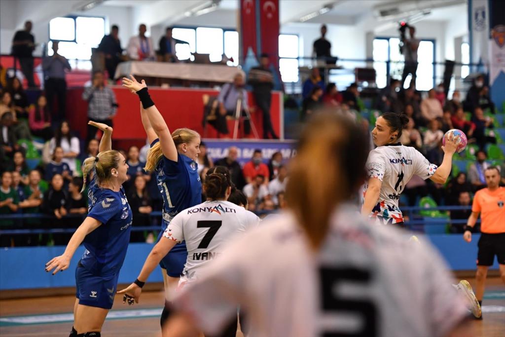 Hentbol Kadınlar Süper Ligi’nde, puan durumunda 2 ve 3’üncü sırayı paylaşan Konyaaltı Belediyespor ve Yalıkvakspor Bodrum Binnaz Karakaya Spor Salonu’nda karşı karşıya geldi. İlk yarısı ev sahibi ekibin 16-15 üstünlüğü ile sona eren karşılaşmanın ikinci yarısında hücum oyuncularıyla etkili olan Konyaaltı Belediyespor, hem oyun hem de skor olarak üstün olan taraftı. Son saniyelere kadar bu üstünlüğünü sürdüren Mavi Kelebekler, bitime beş saniye kala aleyhine verilen tartışmalı bir penaltı golüne engel olamayarak sahadan 29-29 beraberlikle ayrıldı. Bu sonuçla puan durumunda 3’üncü sıradaki yerini koruyan Konyaaltı’nda gözler hafta içinde oynanacak Türkiye Kupası çeyrek final mücadelesine çevrildi.