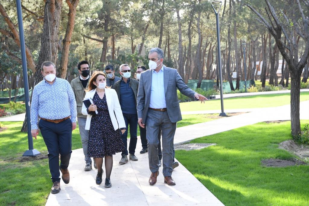 Konyaaltı Belediyesi’nin Öğretmenevleri Mahallesi’nde halka kazandırdığı 117 dönümlük HayatPark’ta çalışmalar tüm hızıyla sürüyor. İlk etaptaki çalışmaların tamamlanmasının ardından halkın kullanımına açılan ve büyük beğeni gören HayatPark’ın ikinci etap çalışmaları devam ediyor. HayatPark’ın ilk etabındaki koşu ve yürüyüş yolu, çocuk oyun alanları, tenis kortları, iki adet kafeterya ve yeşil alanlar hizmet vermeye başladı. Konyaaltı Belediye Başkanı Semih Esen, ilk etabı halkın takdirini kazanan HayatPark’ta ikinci etap çalışmalarını yerinde inceledi. Başkan Semih Esen, birim müdürlerinden çalışmalar hakkında bilgi aldı.