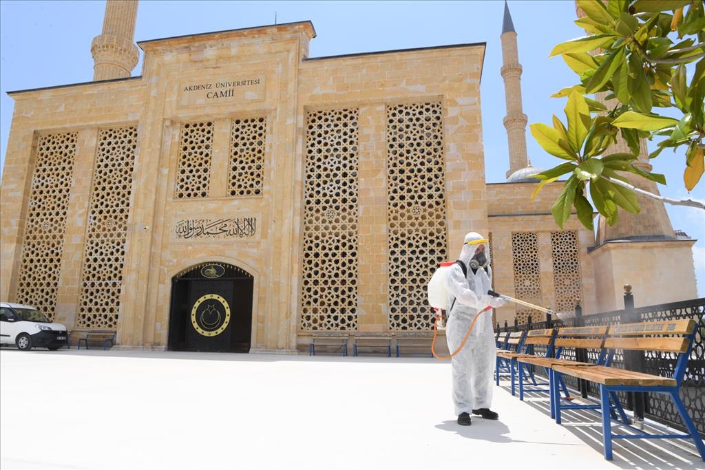Koronavirüs tedbirleri kapsamında ibadete ara verilen camiler, 74 gün sonra cuma namazı ile tekrar ibadete açıldı. Konyaaltı Belediyesi, Konyaaltı Kaymakamlığı ve İlçe Müftülüğü işbirliği ile gerekli cuma namazı kılınacak alanlar vatandaşlar için hazırlandı. Konyaaltı Belediyesi ekipleri, ibadet yapılacak alanları bir gün öncesi ve namaza saatler kala olmak üzere iki kez dezenfekte etti. Kapalı pazar yerlerinde sosyal mesafe alanları oluşturuldu. Belediye görevlileri vatandaşlara üzerinde namaz kılabilecekleri tek kullanımlık kartonlar dağıttı.