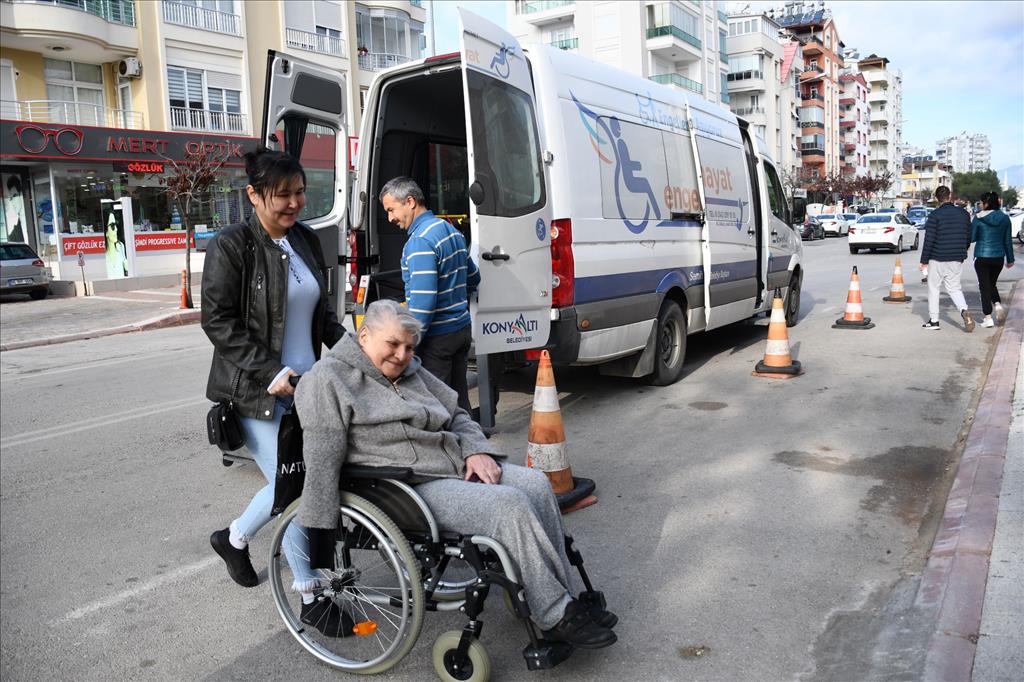 Konyaaltı Belediyesi Sosyal Hizmetler Merkezi (KOSHİM) bünyesinde hizmet veren ‘Engelsiz Ulaşım Aracı’ engelli bireylerin hayatlarını kolaylaştırıyor. Engelli bireyler, Konyaaltı Belediyesi’nin engelliler için tasarlanan aracıyla, hastanelere nakilleri sağlanıyor. Belediyenin sağlık personeli eşliğinde evlerinden alınan engelli bireyler, tedavi gördükleri hastaneye götürülüyor ve tedavileri bittikten sonra tekrar evlerine bırakılıyor. Engelli vatandaşlar bu hizmet ile tedavilerini daha rahat bir şekilde yerine getirebiliyor.