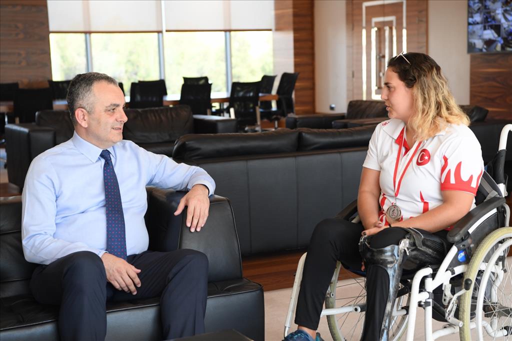 Antalya’da omurilikte gelişim bozukluğu hastalığıyla dünyaya gelen Simge Elif Poyraz (22) bir arkadaşının tavsiyesiyle halter sporuyla tanıştı. Sol ayağındaki kısmı felç rahatsızlığı olan Simge Elif Poyraz, engeline aldırmadan sporla hayata tutundu. 4 ay gibi kısa bir sürede Bedensel Engelliler Türkiye Şampiyonası’nda ikincilik elde eden Simge’nin bu başarısı büyük bir takdir topladı.