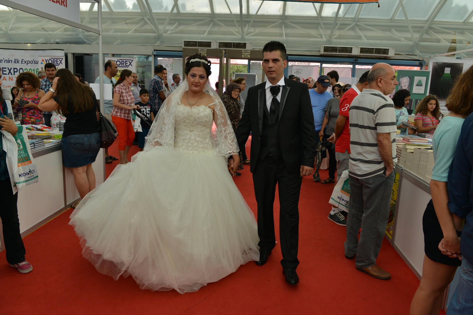 Gelin ve damat 5. Konyaaltı Kitap Fuarı’nı ziyaret etti