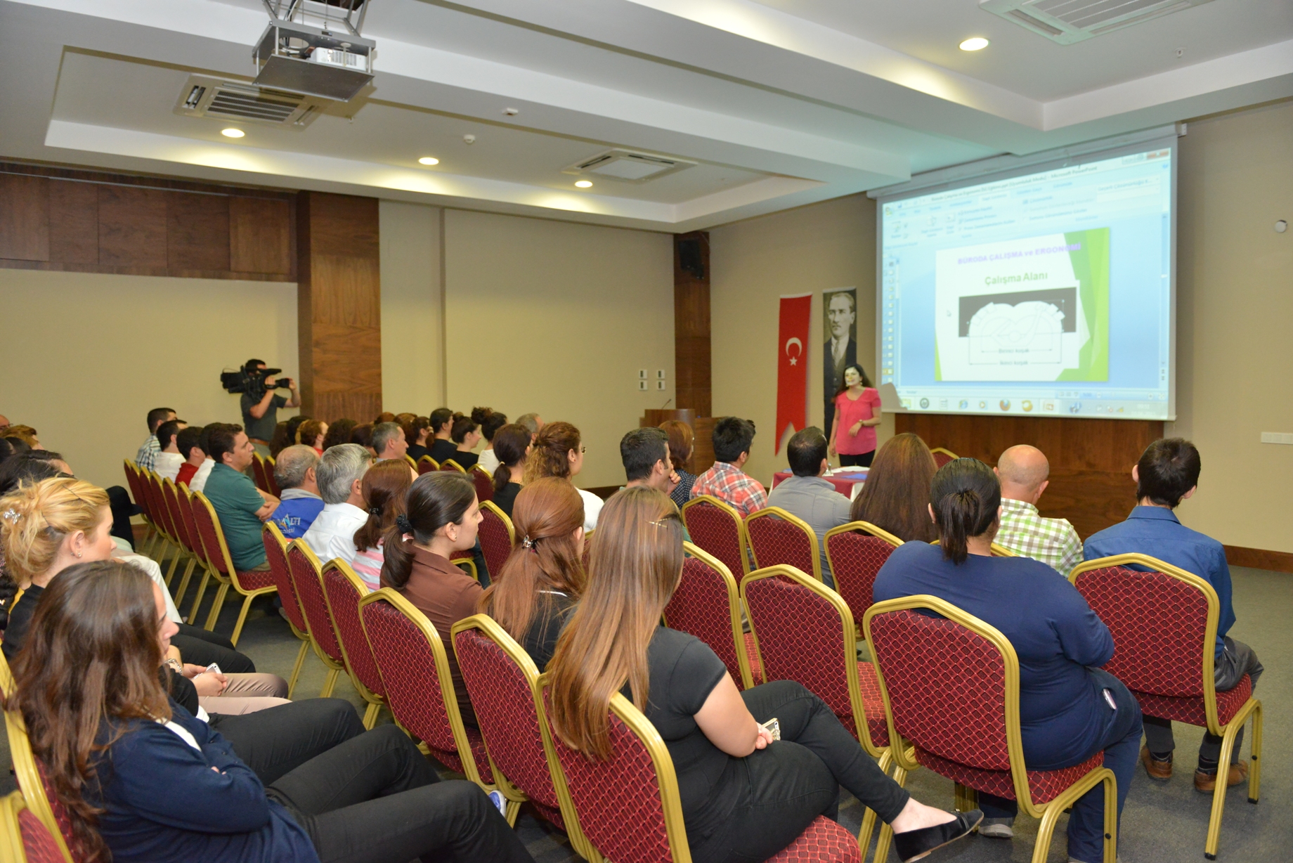 Konyaaltı Belediyesi İnsan Kaynakları Müdürlüğü tarafından düzenlenen eğitim programı kapsamında personel, iş sağlığı ve güvenliği konularında bilgilendirildi. Konyaaltı Belediyesi Ahmet Tunç Salonu’nda düzenlenen eğitim programında İş Güvenliği Uzmanı Birsen Kanat, ilk olarak personeli büroda çalışma teknikleri ve ergonomi uyumu konularında bilgilendirdi. Ofis ortamında çalışırken doğru biçimde oturmanın önemi; bilgisayar, telefon ya da benzeri ofis eşyası kullanırken ise alınması gereken pozisyon hakkında bilgiler veren Birsen Kanat, iş hayatında ihmal edilen küçük ayrıntıların ilerleyen süreçlerde meslek hastalıklarına neden olabileceğine dikkat çekti. Masa başında çalışan kişilerin gün içinde fiziksel hareketler yapması gerektiğini dile getiren Kanat, bu hareketlerin bir kaçını belediye personeline uygulamalı olarak anlattı. İş Güvenliği Uzmanı Kanat, yangın öncesi ve de yangın esnasında alınacak tedbirler konusunda da belediye personelini bilgilendirdi.