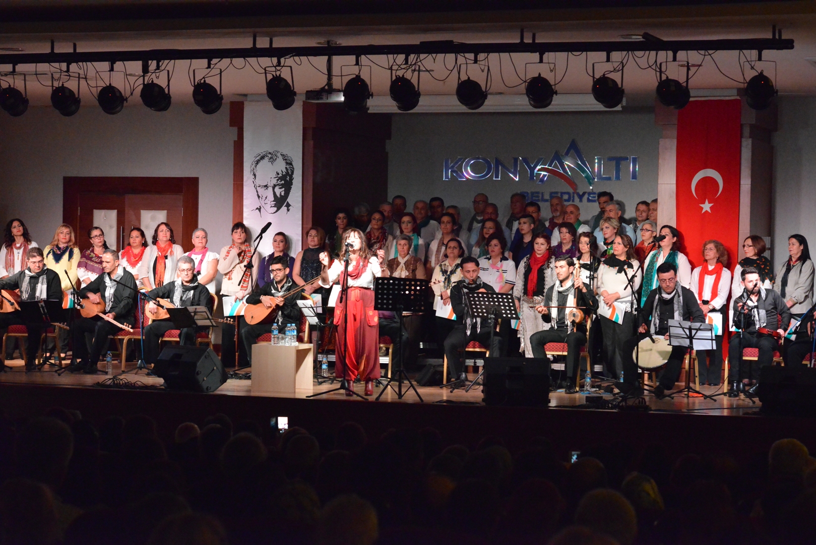 Konyaaltı Belediyesi Feslikan Salonu’nda gerçekleşen konsere vatandaşlar yoğun ilgi gösterdi. “Neşet Ertaş Türküleri” konseriyle izleyicilerle buluşan Konyaaltı Belediyesi Türk Halk Müziği (THM) Korosu Antalyalılara unutulmaz bir müzik ziyafeti yaşattı. Yiğit Aktı şefliğinde gerçekleşen konserde büyük halk ozanı Neşet Ertaş’ın birbirinden güzel 17 eseri seslendirildi.Konuk sanatçı Sabahaddin Hardal’da seslendirdiği Neşet Ertaş, parçalarıyla geceye renk kattı. THM Korosu ‘Ah Yalan Dünya’, ‘Gönlüm Ataşlara Yandı’, ‘Zahiden’, ‘Zor İmiş Meğer’, ‘Gönül Dağı,’ ve ‘Bahçe Duvardan Aştım’ gibi türkülerle konseri izleyen vatandaşlara kimi zaman neşelendirdi, kimi zaman hüzünlendirdi.