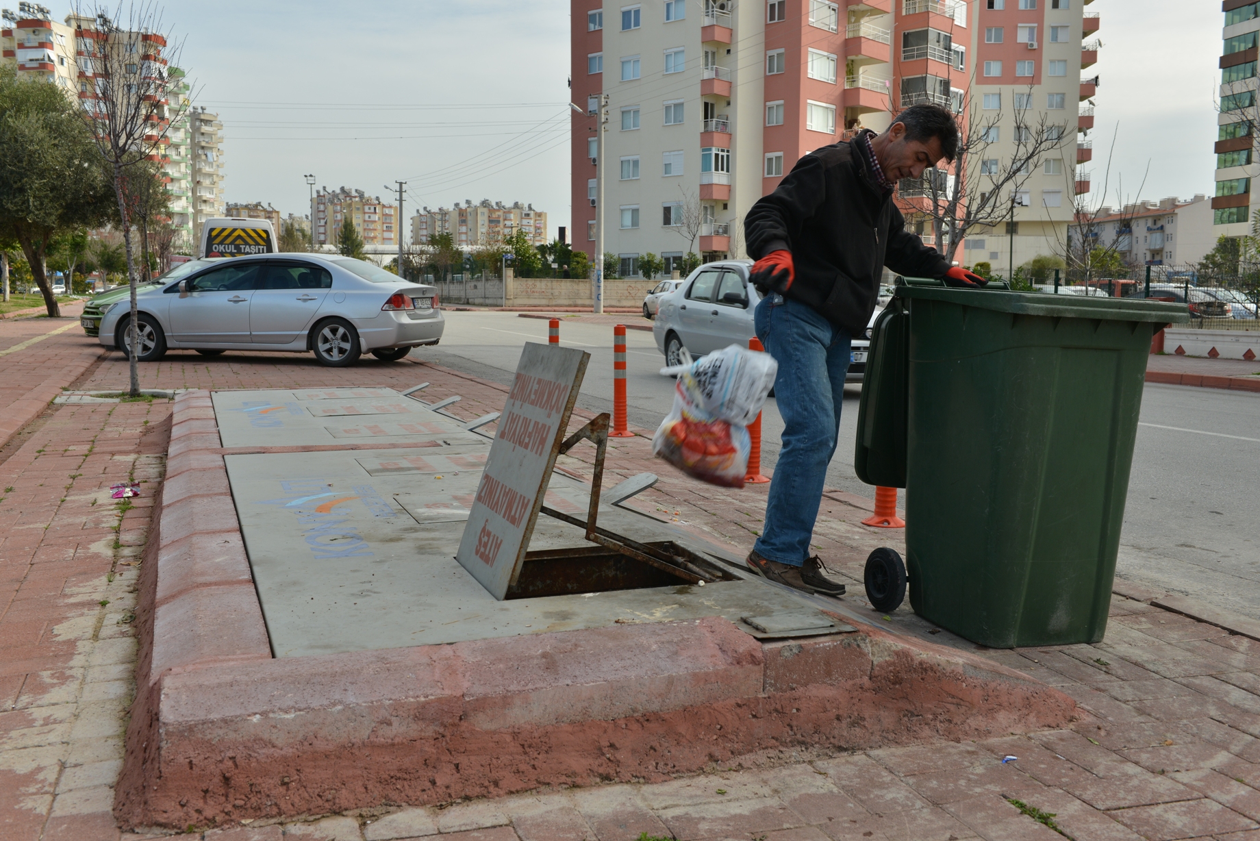 Konyaaltı Belediyesi, “Yer Altı Çöp Konteyneri Projesi”yle, konteynerlerin büyük bir bölümünü yerin altına aldı. Şu ana kadar 250 ayrı noktada 550 konteyner yer altına alınırken bu projeyle hem tasarruf sağlanıyor, hem de görüntü kirliliğinin önüne geçiliyor.Yeraltı çöp konteyneri sistemini kısaca şöyle özetleyebiliriz: Kentin uygun yerlerine çukur açılıyor, içine konteyner yerleştiriliyor ve üstü kapatılıyor. Çukurun üstüne, alttaki konteynerle bağlantılı olacak şekilde, bir kapak yerleştiriliyor. İnsanlar ayağı ile basarak çöp bidonunu açıyor içine çöplerini atıyor.