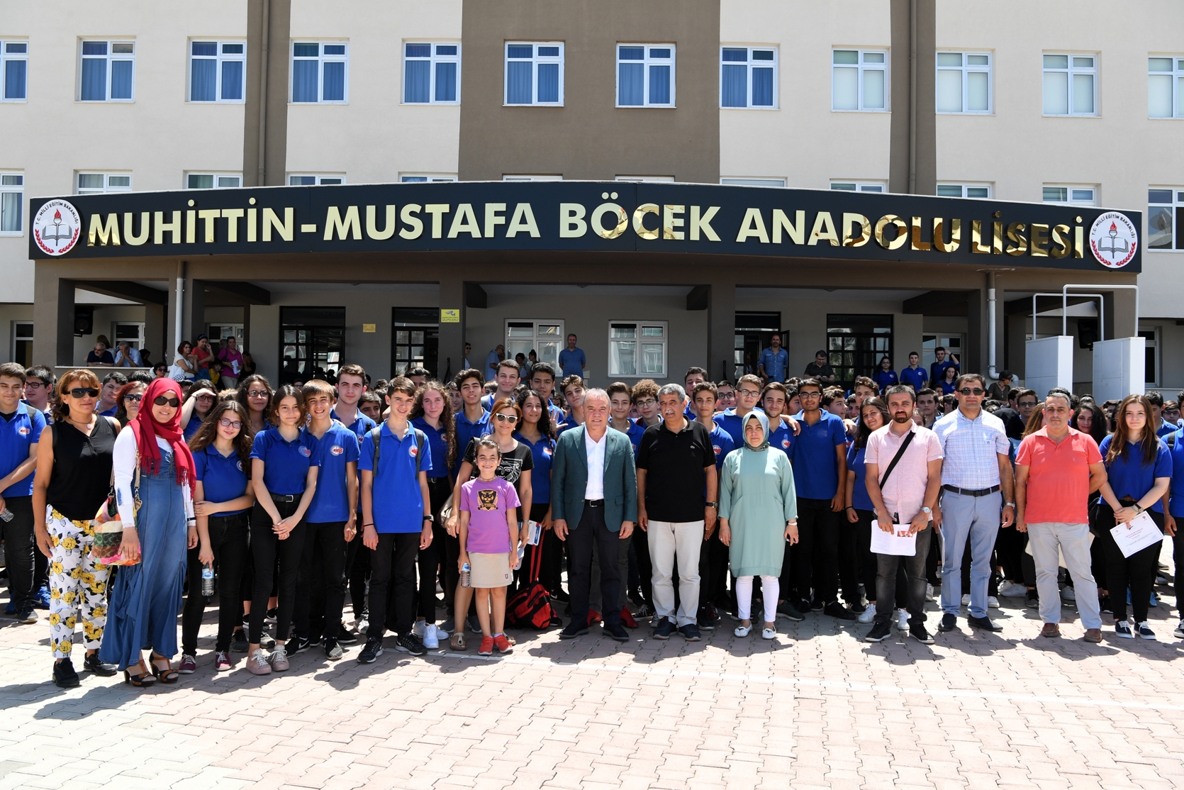 2017-2018 eğitim-öğretim yılının son gününde, tüm yurtta olduğu gibi Antalya'da karne heyecanı yaşandı. Konyaaltı Belediye Başkanı Muhittin Böcek'te babası ve kendi adını taşıyan Muhittin-Mustafa Böcek Anadolu Lisesi'nde gerçekleşen karne törenine katıldı. 2017-2018 eğitim-öğretim sezonunda okul üçüncüsü Melisa Yılmaz, ikinci Yaren Demirtaş ve birinci Melek Çetin oldu. Başkan Böcek, törende dereceye giren öğrencilere altın hediye etti.Muhittin Mustafa Böcek Anadolu Lisesi'nde düzenlenen karne töreninin kendisi için ayrı bir önem taşıdığına değinen Başkan Böcek, her zaman bu okulda gerçekleşen etkinliklere katılmaktan büyük mutluluk duyduğunu söyledi.