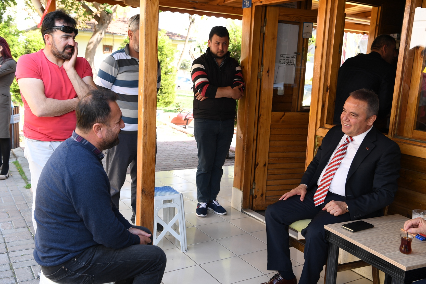 Konyaaltı Belediye Başkanı Muhittin Böcek, muhtarlar buluşmasına devam ediyor. Başkan Böcek, Türkiye Muhtarlar Derneği Antalya Şube Başkanı Mustafa Yılmaz, Antalya Muhtarlar Derneği Başkanı Nazif Alp, Muratpaşa İlçesi Muhtarlar Derneği Başkanı Ahmet Akcan Antalya Yörük Türkmen Derneği Başkanı Kemal Tunç ve Muratpaşa ilçesi mahalle muhtarlarını kahvaltıda ağırladı. Muhittin Böcek, muhtarlara çalışmalar hakkında bilgi verdi.PROJELER BİR BİR TAMAMLANDI Bugüne kadar vermiş oldukları sözleri bir bir hayata geçirdiklerini dile getiren Başkan Muhittin Böcek, Toros Mahallesi’nde 32 bin metrekare alan üzerine Expo 2016 Antalya Parkının yapımını tamamladıklarını söyledi. Bununla birlikte Çocuk Kreşi ve Gündüz Bakımevleri, Konyaaltı Kültür ve Cemevi, Yaşlılar Kreşi, Kadınlar Sanat ve Eğitim Lokali, 2.