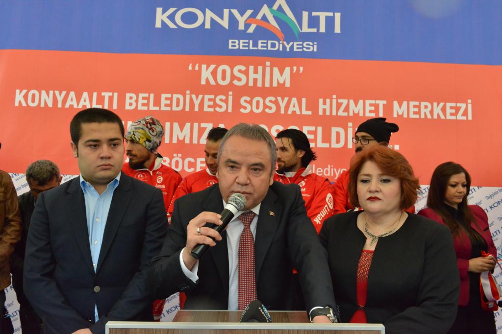 Konyaaltı Belediye Başkanı Muhittin Böcek yaptığı açılış konuşmasında spor ve oyun grupları, kadın emek pazarı gibi bütüncül bir yaklaşımla tasarlanan KOSHİM’de sosyolog, psikolog, avukat ve diyetisyen aile danışma birimlerinin de hizmet vereceğini söyledi. Muhittin Böcek, bunların yanı sıra toplantı salonları, kütüphane ve engelli vatandaşlar için sesli kütüphanesiyle de bir çok sosyal unsuru KOSHİM’le bir arada topladıklarını kaydetti.
