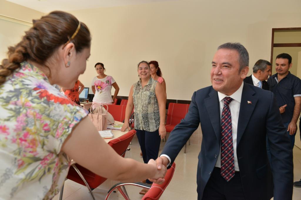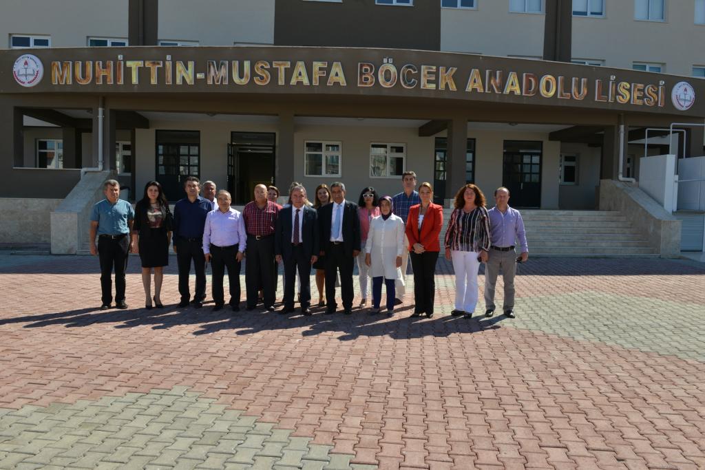 32 derslikli bin 400 öğrenci kapasiteli Muhittin-Mustafa Böcek Anadolu Lisesi’nde ilk olarak Okul Müdürü Hakan Demir’i ve öğretmenleri ziyaret eden Başkan Muhittin Böcek, yeni eğitim öğretim yılının tüm öğretmen ve öğrenciler için hayırlı olması temennisinde bulundu. Böcek ailesi olarak bağışladıkları arazi üzerine babası ve kendi ismini taşıyan okulun inşa edildiğini ve bunun kendisini son derece onurlandırdığını ifade eden Başkan Muhittin Böcek, “ Bu alanı özel okul ve ticari alan yapmak için gelenler oldu. Ben kendim devlet okulunda okudum. Doğup büyüdüğüm topraklardaki bu insanlara vefa borcum var düşüncesi ile Antalya Valiliği’nde İl Milli Eğitim Müdürlüğü’yle protokol yaptık” dedi.