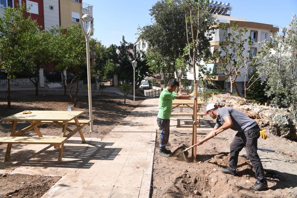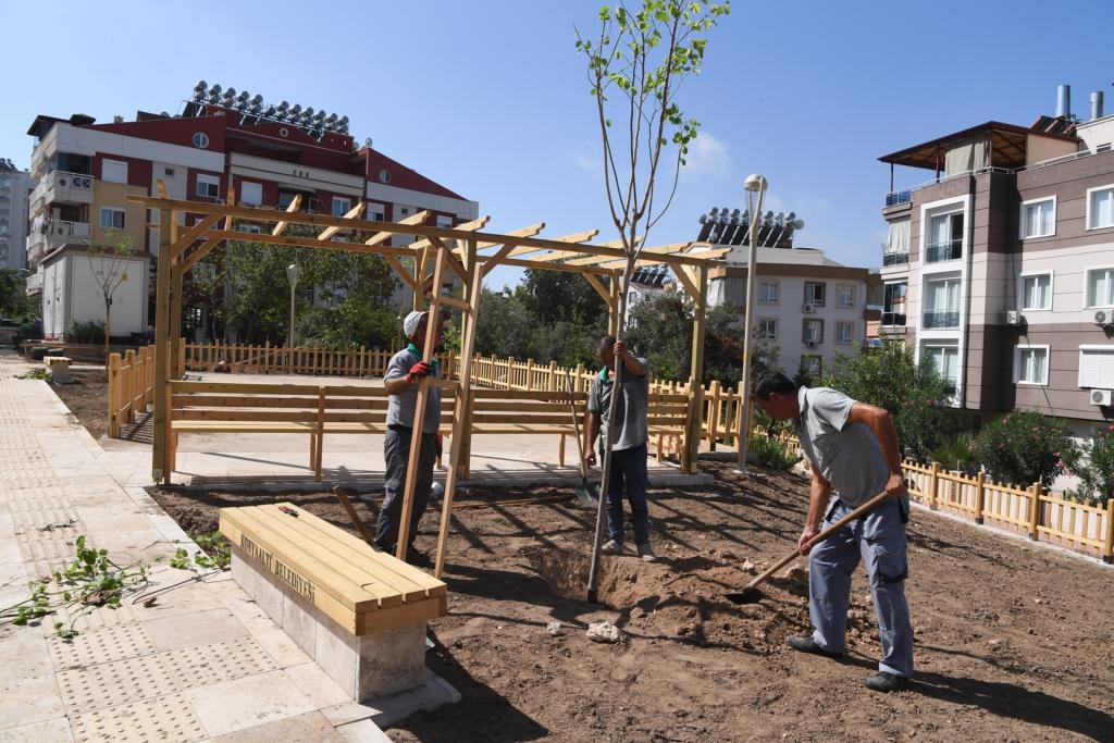 Pınarbaşı Mahallesi 715-720 sokak kesişiminde bulunan park alanını kamulaştırarak mülkiyet sorununu çözen Konyaaltı Belediyesi, geçtiğimiz günlerde bin 400 metrekare alanda park yapım çalışmalarına başladı. İlk olarak taştan örme istinat duvarı ve ahşap çitlerle parkın sınırını belirleyen Konyaaltı Belediyesi Park ve Bahçeler Müdürlüğü, park içerisinde doğal dokuyu da koruyor. Engellilere uyumlu yürüme yolları, çocuk oyun alanı, oturma alanları ve piknik masalarının yer aldığı parkta, ağaçlandırma çalışmaları başlatıldı.
