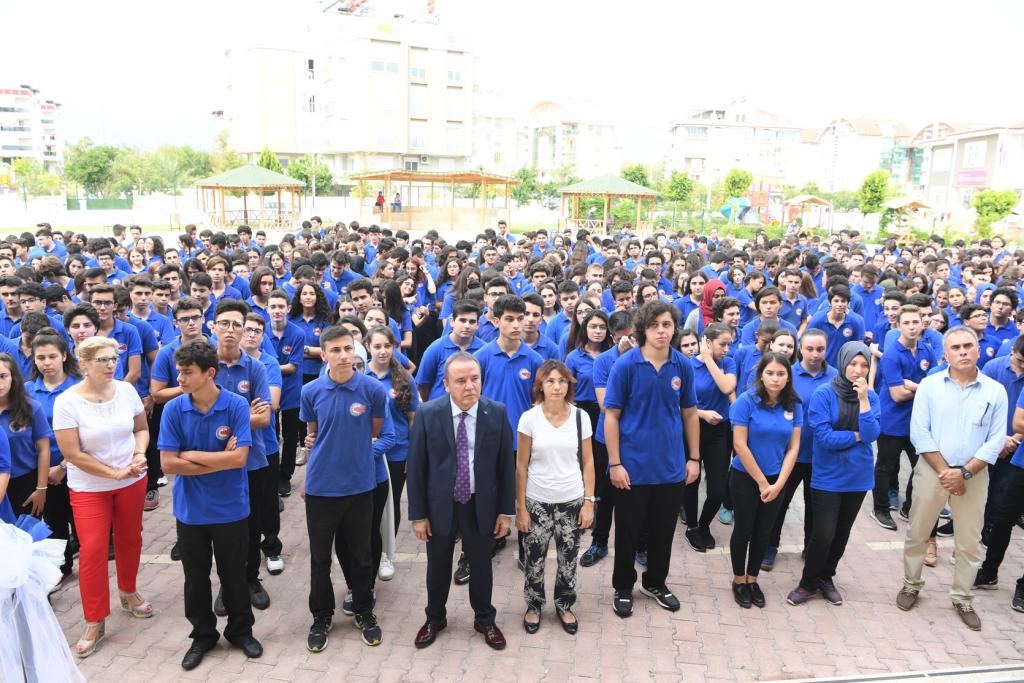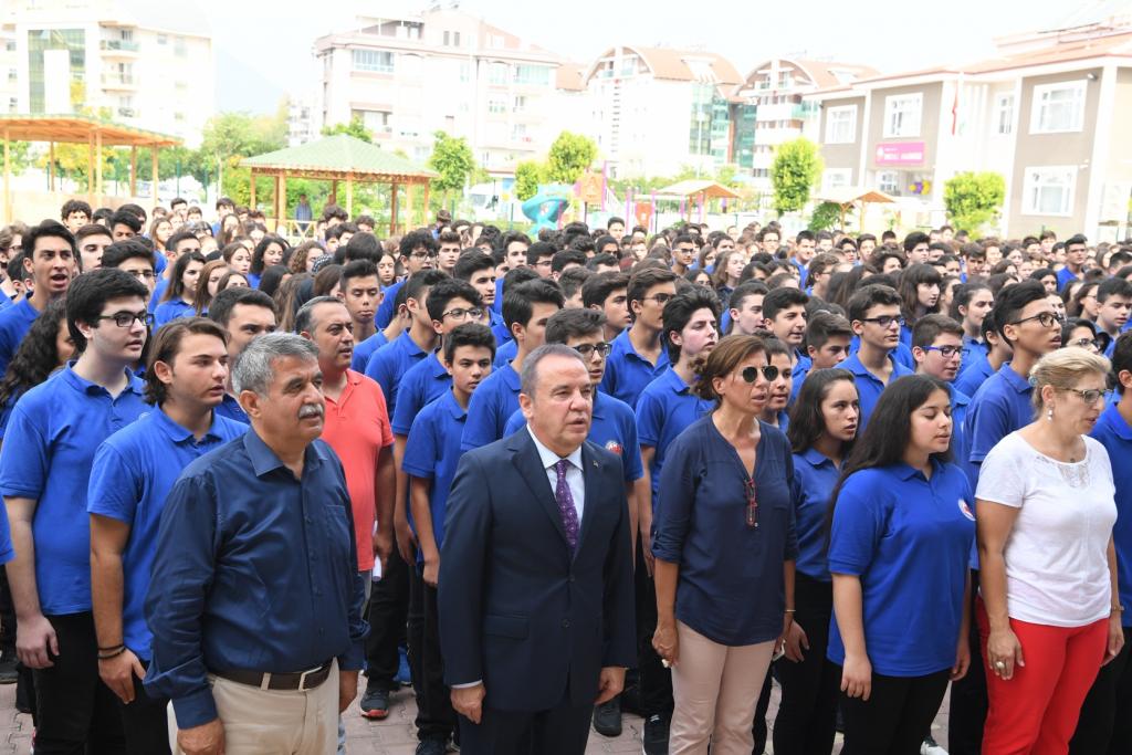 Konyaaltı Belediye Başkanı Muhittin Böcek, 2017-2018 eğitim öğretim yılının ilk ders gününde Muhittin-Mustafa Böcek Anadolu Lisesi’ni ziyaret etti. 900’e yakın öğrenciyle ders başı yapan Muhittin Mustafa Böcek Anadolu Lisesi’nde öğretmen ve öğrencileri ziyaret eden Başkan Muhittin Böcek, yeni eğitim öğretim yılının tüm öğretmen ve öğrenciler için hayırlı olması temennisinde bulundu.