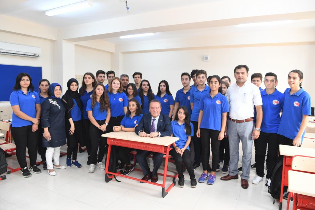 11/C sınıfı öğrencilerini ilk ders saatinde ziyaret eden Muhittin Böcek, okul sırasında oturarak öğrencilerle sohbet etti. Öğrencilere “Hayallerinizin peşinde koşun” diyen Muhittin Böcek, Belediye Başkanı olarak her zaman onların yanlarında olacağını kaydetti.