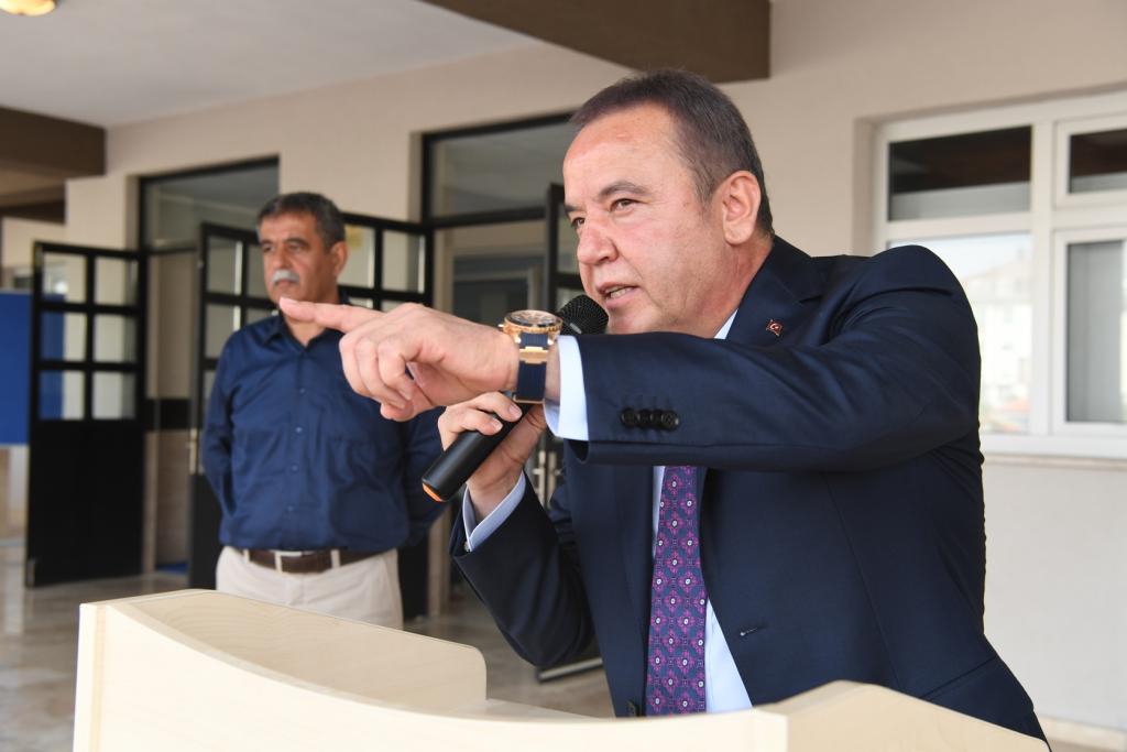 Böcek ailesi olarak bağışladıkları arazi üzerine babası ve kendi ismiyle inşa edilen okulun hayatında ayrı bir öneme sahip olduğunu ifade eden Başkan Muhittin Böcek, “Ben devlet okulunda okudum. Doğup büyüdüğüm topraklardaki bu insanlara vefa borcum var düşüncesiyle bu okul projesini hayata geçirdim. Kısa süre içinde tamamlanıp hizmete açılan Muhittin-Mustafa Böcek Anadolu Lisesi’nde 2017-2018 eğitim öğretim yılının tüm öğretmen ve öğrencilerimize hayırlı olmasını diliyorum.” diye konuştu.