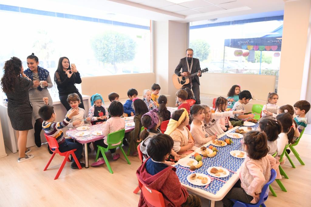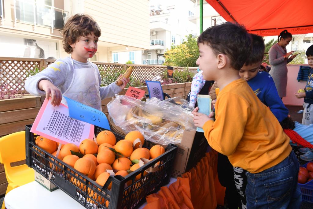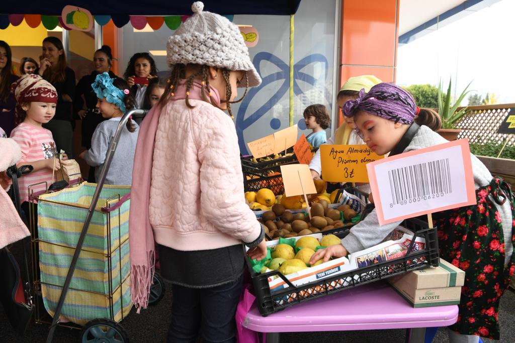 Tutum ve yatırım alışkanlığının küçük yaşlarda kazanılması gerektiği düşüncesiyle Konyaaltı Belediyesi Çocuk Kreşi, farklı bir etkinliğe imza attı. Pazar esnafı kıyafetleri giyen kreş öğrencileri kreş bahçesinde meyve sebze satışı yaparken, kimi öğrencilerde müşteri olup alışveriş yaptı. Rolüne kendini kaptıran bazı öğrenciler sandalyelere çıkıp müşteri çekebilmek için bağırdı. A’dan Z’ye her şeyin düşünüldüğü etkinlikte kimi öğrencilerde zabıta memuru olup pazarcıları denetledi.