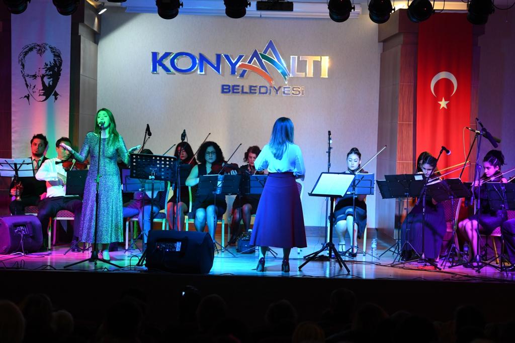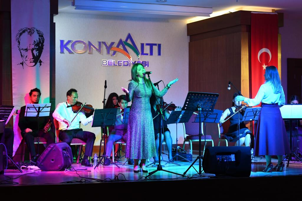 Konyaaltı Belediyesi Keman Orkestrası, muhteşem bir performans ortaya koyarken Devlet Opera ve Bale Sanatçısı Ümit Burak Tekinay ve Pınar Kadıoğlu seslendirdikleri solo şarkılarla geceye renk kattı.