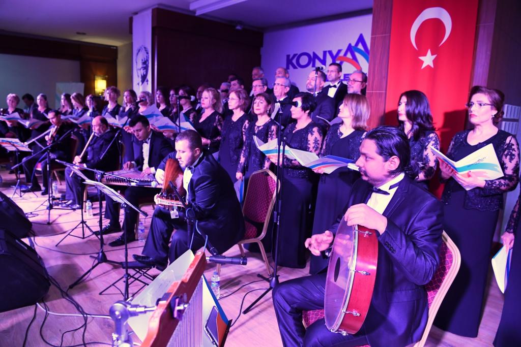 Zehra Özçelik’in şefliğinde sahne alan Türk Sanat Müziği Korosu’nun saz ekibinde; ud da Onur Uğurbaş, kanun da Alperen Kozak, keman da Murat Çalgıcılar, ney de Oğuz Kaan Birhekimoğlu, viyonolsel de Kamil Akpara, ritim de Nurallah Gürsoy ve Levent Şekerli yer aldı. Onur Baki Vural’ın yaptığı anons ile sahne de yerlerini alan Koro, zaman zaman seslendirdiği solo şarkılarla da gönülleri mest etti.