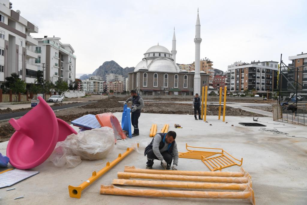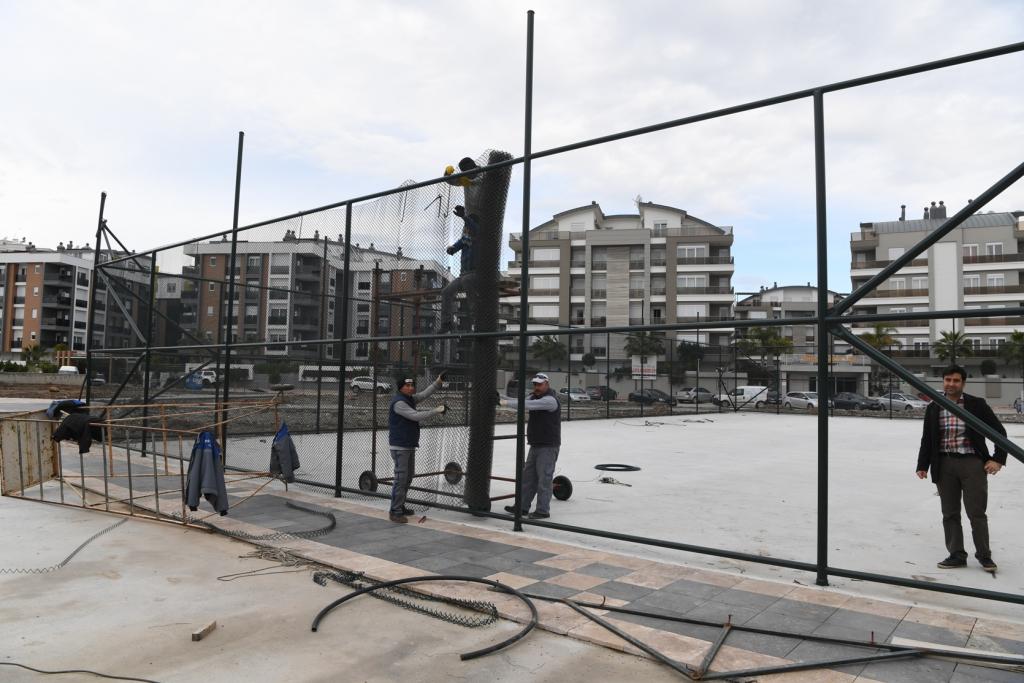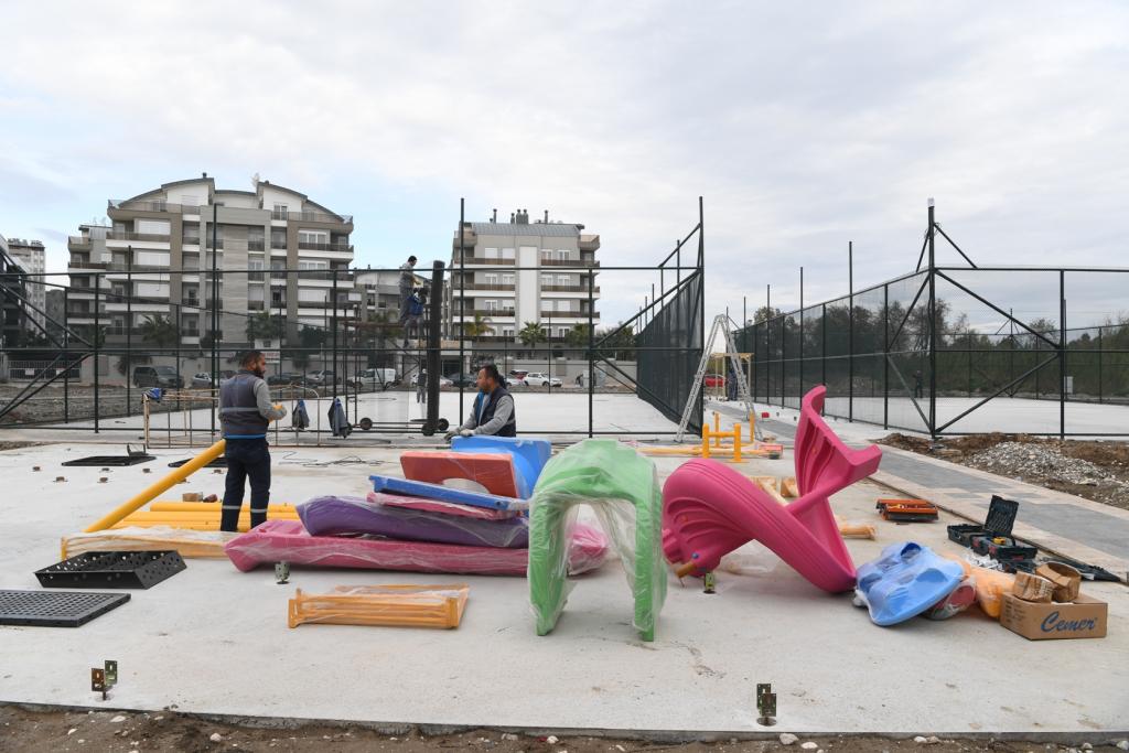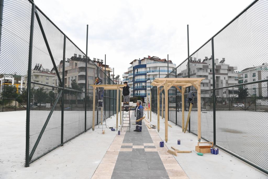 Hurma Mahallesi’nde sıcak asfalt ve kaldırım çalışmalarını tamamlayan Konyaaltı Belediyesi, şimdide bölgeye dev bir ‘spor park’ı inşa ediyor. Hurma Mahallesi’nde 209-210 Sokak kesişiminde yer alan 7 bin 500 metrekare alana inşa edilen parkın içersinde basketbol sahası, tenis kortu, sokak tipi fitnes aletleri ve koşu yolu yer alacak. Konyaaltı Belediyesi Park ve Bahçeler Müdürlüğü tarafından yapımı büyük ölçüde tamamlanan spor parkı çocuk oyun alanı, yürüme yolları, mini meydan ve oturma alanlarıyla da bölge de yaşayan 7’den 70’e herkes için yeni yaşam alanı oluşturuyor.