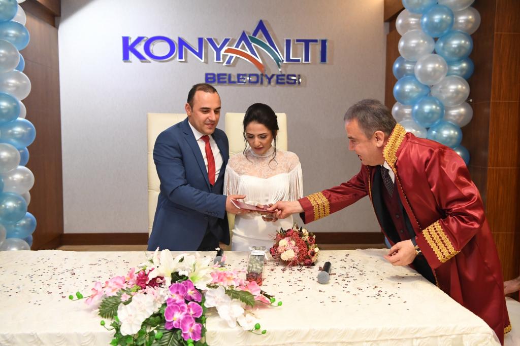 Konyaaltı Belediyesi, 14 Şubat Sevgililer Günü evlenmek için müracaatta bulunan çiftlere sürpriz hazırladı. Konyaaltı Belediye Başkanı Muhittin Böcek’in talimatıyla nikah akdinin gerçekleştirildiği Konyaaltı Belediyesi Feslikan Salonu balonlarla süslendi. Balonlardan oluşan kalplerin altında bol bol fotoğraf çekinen genç çiftler özel günlerini ölümsüzleştirmeyi de unutmadı.