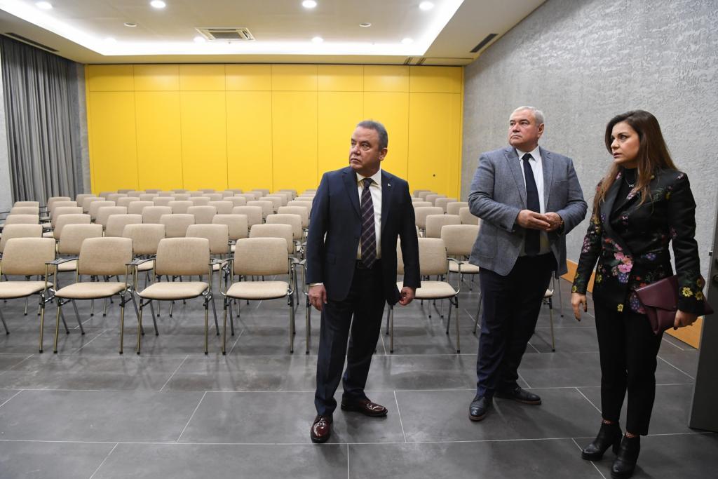 Konuşmaların ardından Nazım Hikmet Fuar ve Kongre Merkezi’nde salonları gezen Davut Çetin ve Yeliz Gül Ege, Başkan Muhittin Böcek’e yapmış olduğu hizmetlerinden ötürü teşekkür etti.