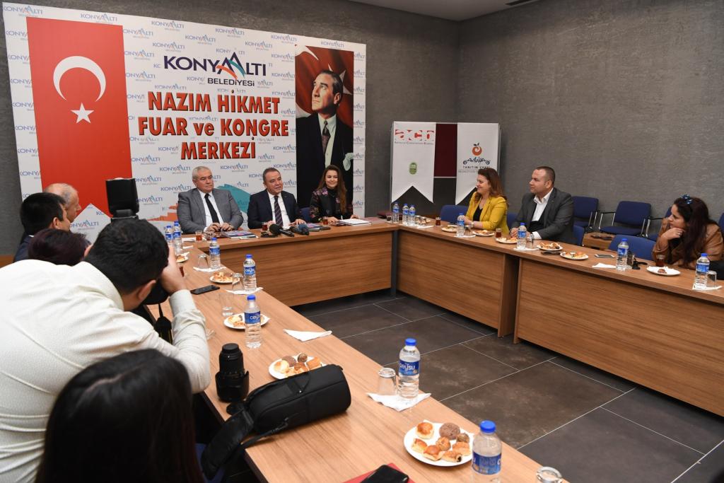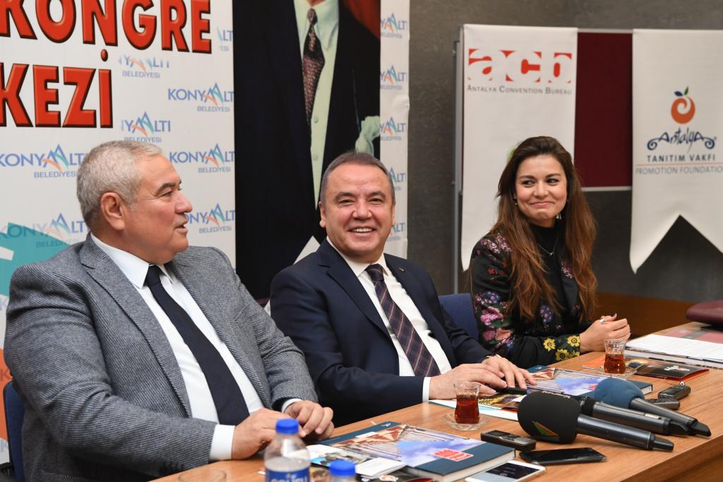 “Antalya’da turizmi deniz, kum ve güneş üçlüsünden çıkarıp 12 aya yayacak projeler üretmeliyiz” diyen Konyaaltı Belediye Başkanı Muhittin Böcek, kongre turizmin en az sağlık turizmi kadar önemli olduğuna vurgu yaptı. Başkan Muhittin Böcek, ATSO Başkanı Davut Çetin ve Antalya Tanıtım Vakfı Başkanı Yeliz Gül Ege ile birlikte düzenlediği basın toplantısında Nazım Hikmet Fuar ve Kongre Merkezinin, kongre merkezlerini ulusal ve uluslar arası organizasyonlarla daha etkin kılan Antalya Kongre Bürosuna üye olduğunu bildirdi.