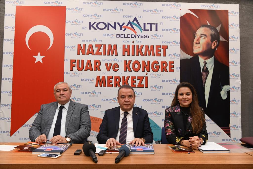 Pınarbaşı Mahallesi'nde yapımı 9 ay gibi kısa bir sürede tamamlanan ve geçtiğimiz aylarda hizmete açılan Konyaaltı Belediyesi Nazım Hikmet Fuar ve Kongre Merkezinin açıldığı günden bu yana bir çok etkinliğe ev sahipliği yaptığını ifade eden Muhittin Böcek, 3 bin 500 kişilik kongre ve 600’er kişilik iki adet çok amaçlı salonuyla Nazım Hikmet Fuar ve Kongre Merkezi’nin, Antalya’da kongre turizmine büyük katkı sunduğunu söyledi. Antalya Konyaaltı Kitap Fuarı’nın 8.sini bu fuar merkezinde düzenlediklerini ve onlarca yazarı ve on binlerce kitap severi bir araya getirdiklerini dile getiren Başkan Böcek, geçtiğimiz günlerde de Antalya’da ilk kez düzenlenen Türkiye Briç Süper Kupa Şampiyonasına ev sahipliği yaptıklarını kaydetti. Bu etkinliklerin Antalya turizmine katma değer sağladığını ifade eden Muhittin Böcek, Antalya Kongre Bürosu üyeliğiyle bu tür etkinliklerin çeşitliliğini artırmak istediklerini söyledi.
