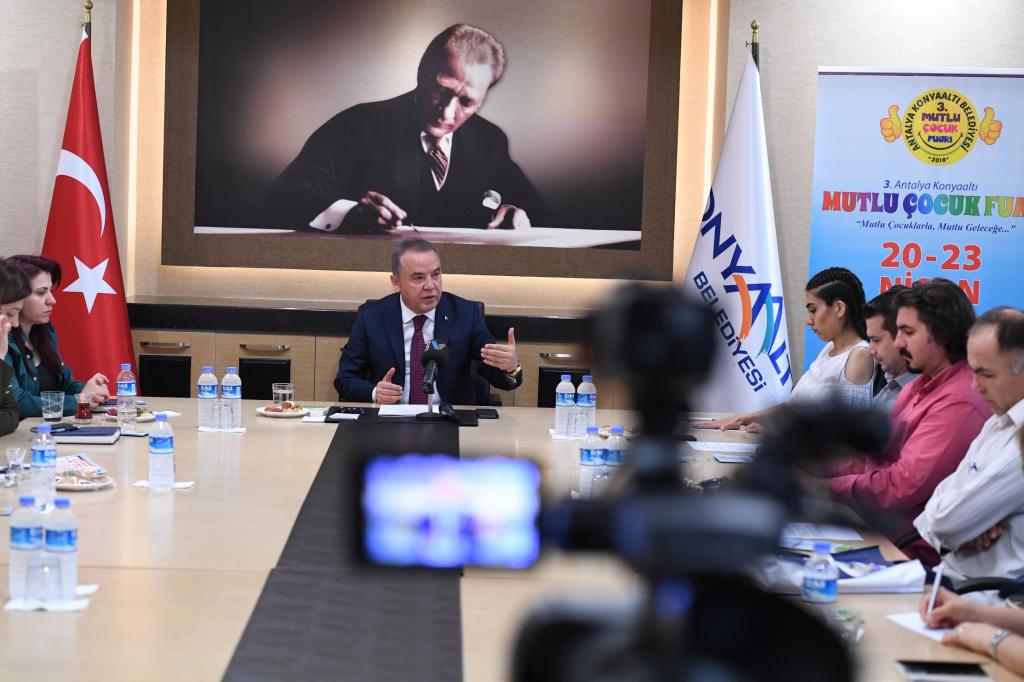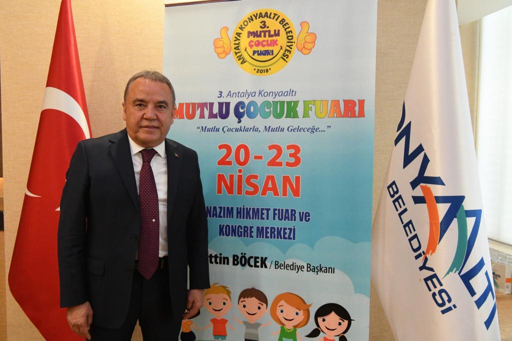 Başkan Böcek şöyle konuştu, “Türkiye Unisef Türkiye Milli Komitesi’nin de destekçisi olduğu Antalya Konyaaltı Mutlu Çocuk Fuarı’nda masallar ülkesi kahramanları ile canlı masal sayfası içinde tiyatral oyunlar, decathlon, minyatür futbol, basketbol, masa tenisi, badminton ve trambolin, paten, scooter, okçuluk ve dark etkinlikleri yer alacak. Ayrıca çocuk istismarına karşı yaptığı çalışmalarla bilinen Saadet Özkan, Akademisyen Anne Doç. Dr. Saniye Bencik Kangal, Oyuncu Anne Şermin Yaşar ve Ceyda Düvenci gibi bir birinden ünlü isimlerde söyleşileriyle aileleri bilgilendirecekler.”