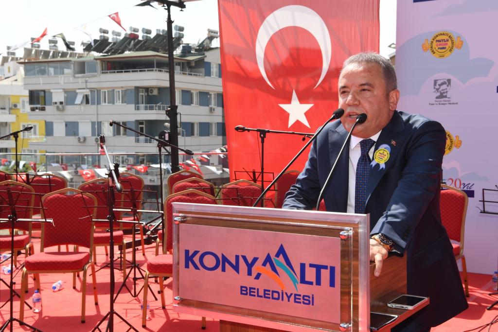 Konser sonrası törenin açılış konuşmasını yapan Eğitim-İş Sendikası Genel Başkanı Mehmet Balık, “Sayın Muhittin Böcek Başkanımız her 23 Nisan, 19 Mayıs gibi çocukların içinde olduğu etkinliklerde en ön sıralarda yer almaktadır. Bu gün de Antalya Konyaaltı Mutlu Çocuk Fuarının açılışındayız. Burada olmaktan büyük mutluluk duyuyorum. Bir kez daha Başkan Muhittin Böcek’i kutluyor, kendisine başarılar diliyordum.” dedi.