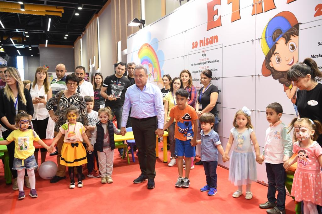 Başkan Muhittin Böcek, 4 gün süren Fuar süresince vatandaşlarla ve çocuklar ile bir araya geldi. Başkan Böcek, fuarın son gününe denk gelen 23 Nisan’da çocukların 23 Nisan Ulusal Egemenlik ve Çocuk Bayramı’nı kutladı. Başkan Muhittin Böcek, fuarı ziyaret eden çocuklara süt, lunapark giriş bileti ve Türk bayrağı hediye etti. Çocukların yoğun sevgisiyle karşılaşan Başkan Muhittin Böcek, çocuklar ile bol bol fotoğraf çektirdi.