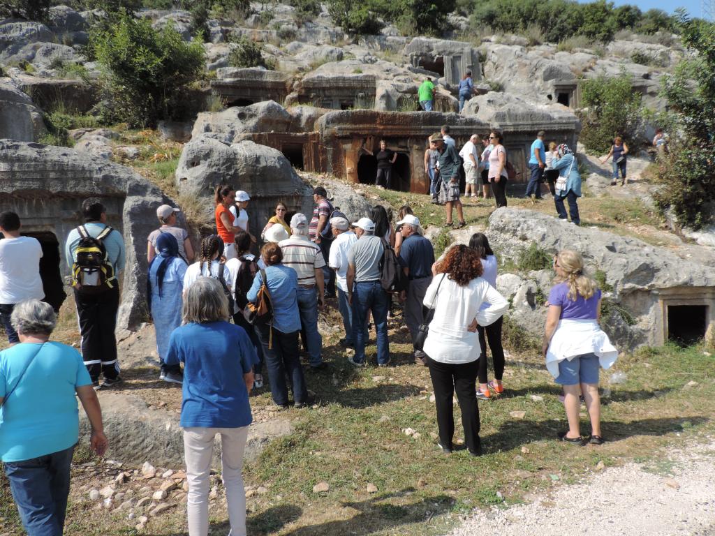 Profesyonel Turist Rehberi ve Arkeolog Dr. Selda Baybo'nun öncülüğünde yapılan gezide bölgenin Klasik Dönem anıtlarından Perikle Heroonu, Kaya Mezarları, Hellenistik Dönem Ptolemaion Anıtı'nın kalıntıları, Roma Dönemi'nden Gaius Caesar Kenotaphı, Antik Tiyatro, Hamam kalıntıları, Bizans Surları ile Doğu Şehir ve Batı Şehir olarak bölünen kentte, Bizans Dönemi Kiliseleri, Yahudi Cemaatine ait Havra, Sütunlu Cadde, Atölyeler ve Selçuklu Dönemi ile Menteşeoğulları Beyliği Dönemi'nden Kafi Baba Tekkesi ve Türbesi tanıtıldı.