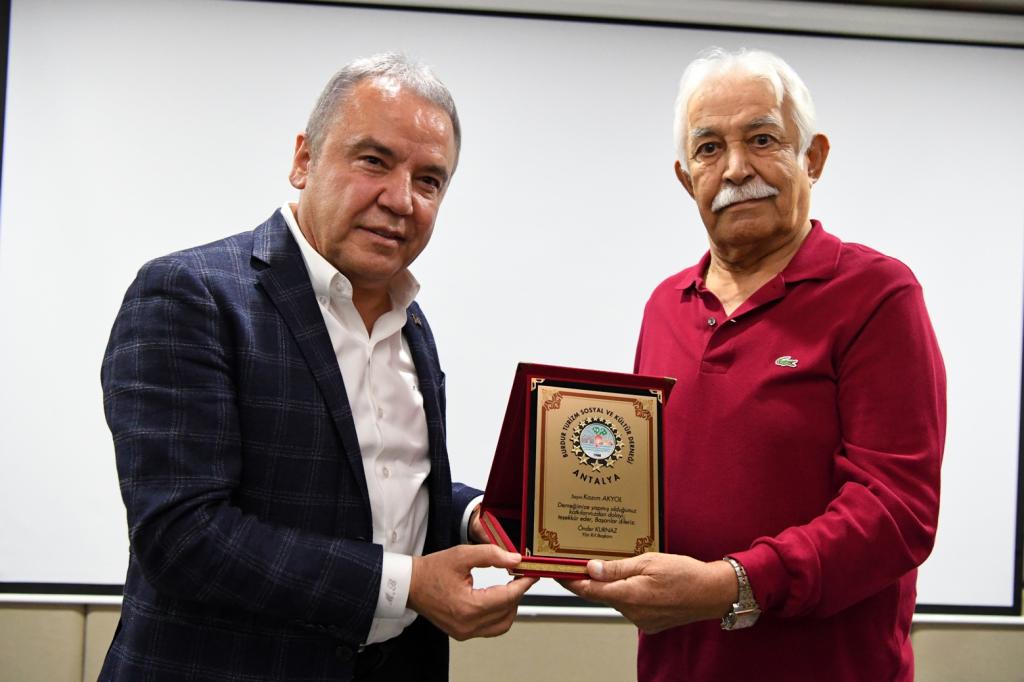 Başkan Muhittin Böcek, gecenin sonunda Antalya Burdurlular Derneği’nde emektar isim Kazım Akyol ve Mehmet Tekin’e plaket takdim etti. İftar yemeğinden sonra bir konuşma yapan Antalya Burdurlular Derneği Başkanı Önder Kurnaz, başta Muhittin Böcek olmak üzere iftar yemeğine katılan tüm misafirlere teşekkür etti.