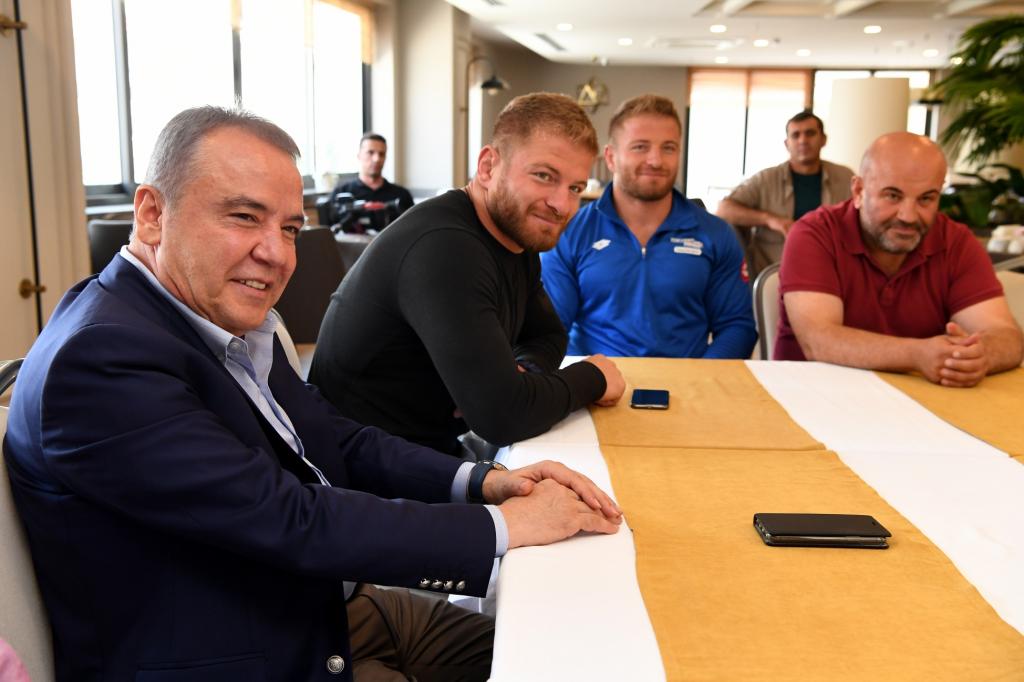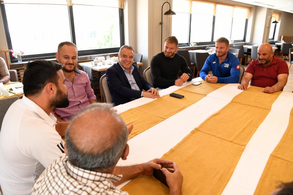Korkuteli Gümüş Han Otel’de güreşçilerle bir araya gelen Konyaaltı Belediye Başkanı Böcek, geçtiğimiz yıl olduğunu gibi bu yıl da Tarihi Kırkpınar Yağlı Güreşleri’nde önemli başarılar elde edeceklerine inandığını söyledi. Başkan Böcek, “Başpehlivanlarımız bu yıl sıkı bir hazırlık dönemi geçiriyor. Bu sezon Kırkpınar öncesi gerçekleşen güreşlerde bir çok kez birincilik kürsüsüne çıktılar. Başpehlivanlarımız İsmail Balaban, Turan Balaban, Hasan Cengiz ve Sinan Kaya’dan önemli başarılar bekliyoruz. Korkuteli’nde güreşçilerimiz Kırkpınar’a hazırlanıyor. Altın kemeri bu yıl da Antalya’mıza getirmek istiyoruz.” dedi.