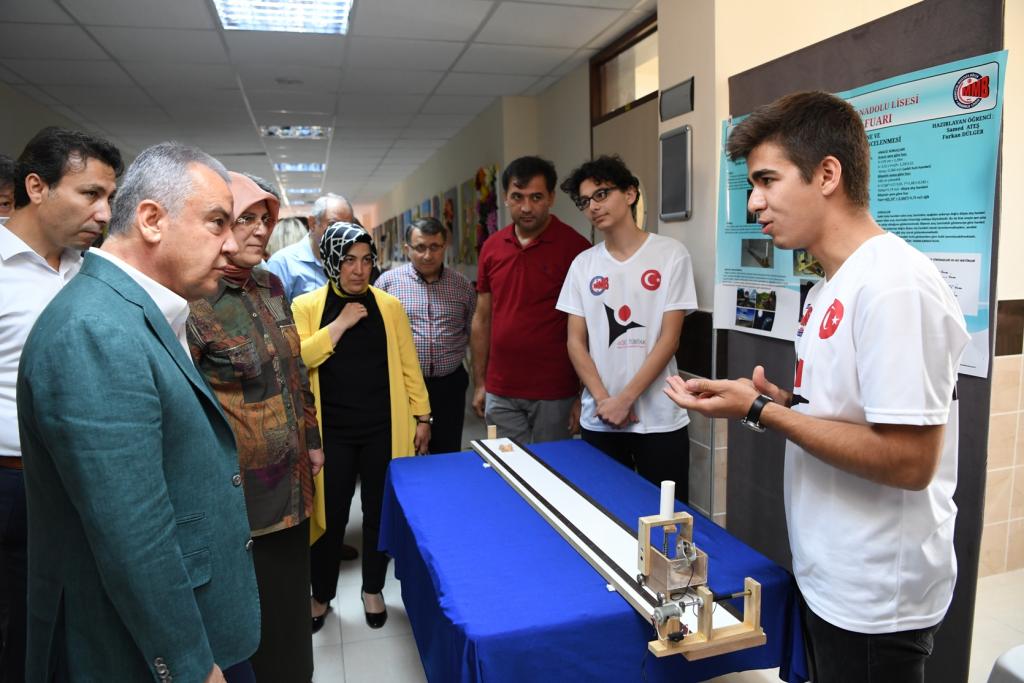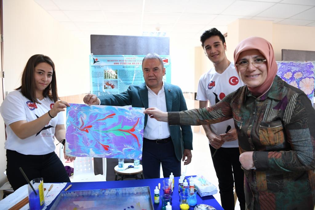 Öğrencilerle bir araya geldiğinde ayrı bir mutlu olduğunu belirten Başkan Muhittin Böcek, “Muhittin Mustafa Böcek Anadolu Lisesi Antalya’mızın en özel liselerinden biridir. Mehmet Akif Ersoy Köşesi ve İngilizce Sokağı çok güzel bir çalışma olmuş. Öğrencilerimiz okul koridorlarında gezinirken bile önemli bilgiler elde edebilecek. Her yıl TÜBİTAK Bilim Fuarı’nda çok özel projeler hazırlıyor. Bu yıl da 24 proje hazırlayan öğrencilerimizi kutluyorum” dedi.