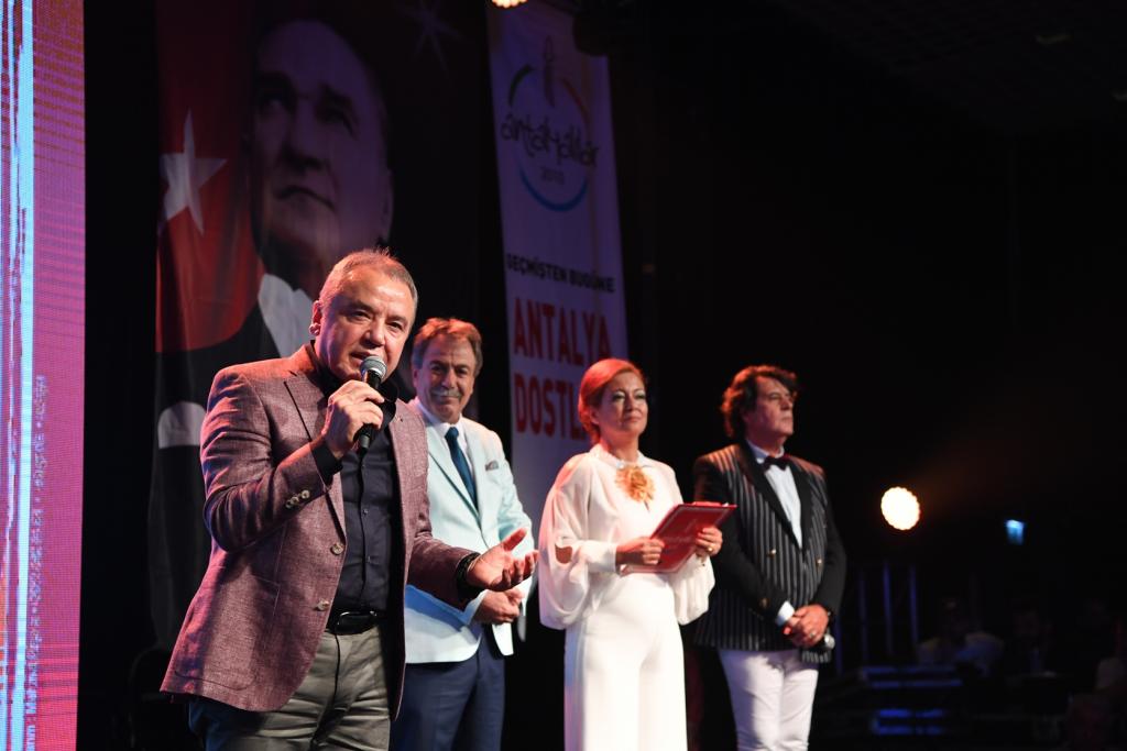 Daha sonra Başkan Muhittin Böcek’e Geçmişten Bugüne Antalya Dostları, geceye katkılarından dolayı plaket verdi. Başkan Muhitttin Böcek ve katılımcılar daha sonra hep birlikte kestikleri pasta ile geceyi sonlandırdı.