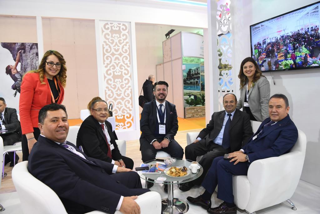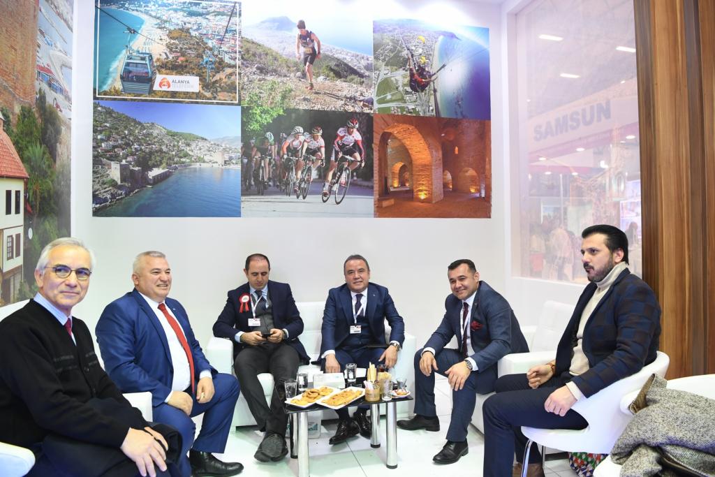 Başkan Böcek, “Konyaaltı’mızın güzelliklerini anlatıyoruz. Konyaaltı deniz, güneş ve kum üçgeni dışında kış turizmi ve tarihi dokusuyla da katılımcıların dikkatini çekiyor. Tüm yıl boyunca turizm seçenekleri ile sektöre önemli alternatifler sunuyoruz. Kış mevsiminde Saklıkent Kayak Merkezi ile kayak turizmine hizmet veriyoruz. Yaz aylarında yerli ve yabancı turistlerin en çok ziyaret ettiği bölgeler arasında yer alıyoruz. Dünya’nın birçok milletinden vatandaşımız yerleşik olarak Konyaaltı’nda yaşamayı tercih ediyor. ” dedi.