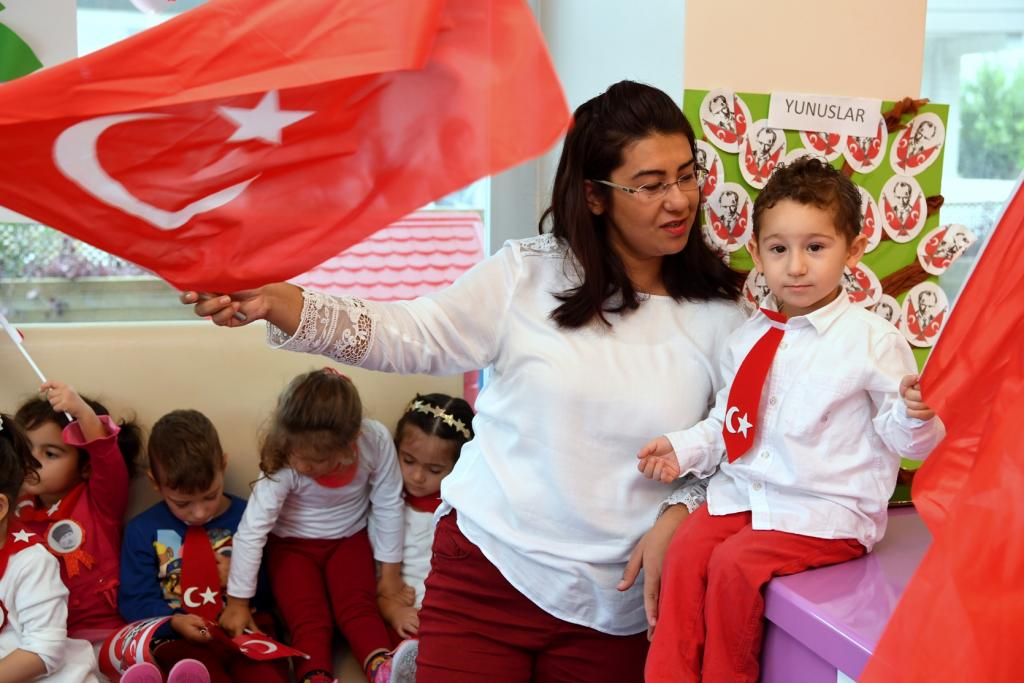 Konyaaltı Belediyesi Gürsu ve Uncalı Çocuk Kreşleri’nde 29 Ekim Cumhuriyet Bayramı, minik öğrencilerin başrolünde olduğu bir birinden renkli gösterilerle kutlandı. Türk bayrakları ve Atatürk posterleriyle donatılan Kreşlerde minik öğrenciler, hazırladıkları ‘Cumhuriyet ve Atatürk’ şiirlerini büyük bir heyecanla okudu.