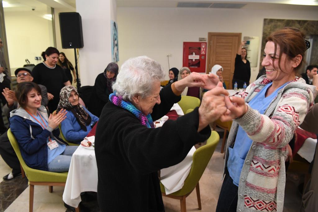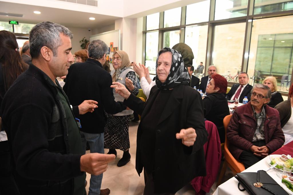 Huzurevi sakinleri, konuşmaların ardından Mehmet Turunç’un seslendirdiği şarkılar eşliğinde dans edip eğlendi. Başkan Böcek’te Yaşlılar Kreşi’nden Fikriye Yurttaş ile dans etti.