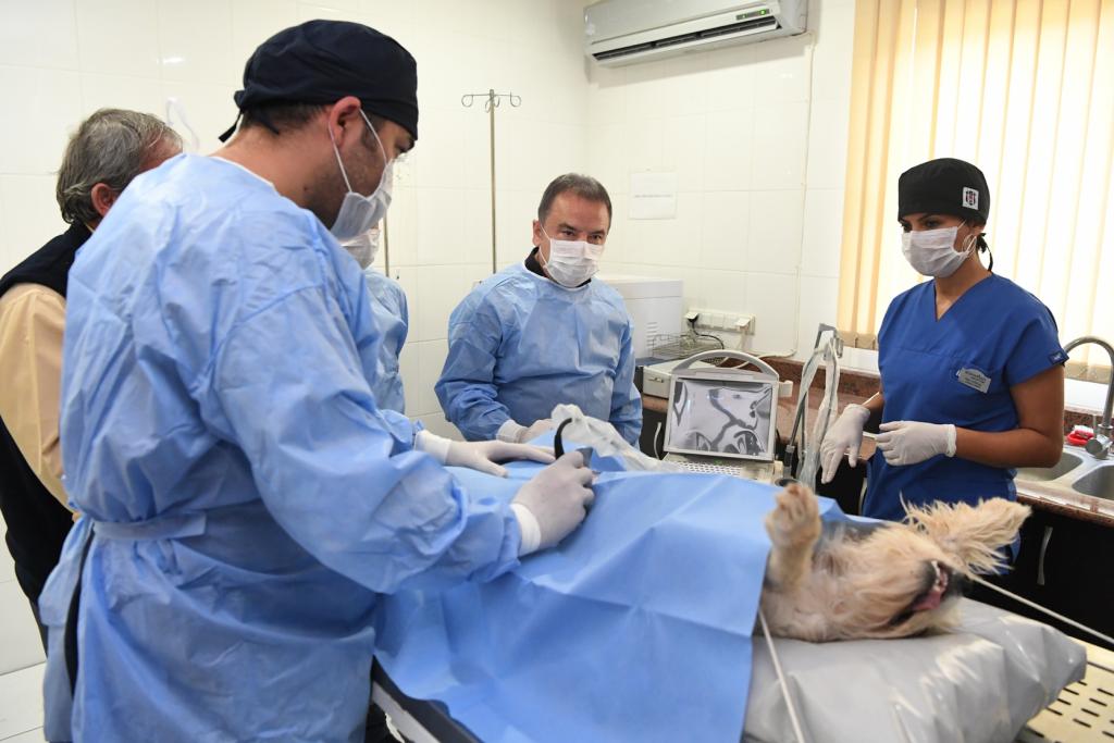 Yeni yılın ilk haftasında bu çalışmaları yerinde görmek istediklerini dile getiren Başkan Böcek ameliyat önlüğü giyerek bir köpeğe uygulanan kısırlaştırma operasyonunu izledi. Ayrıca kırık-çıkık ve gebelik gibi durumların incelendiği ultrason odasında da çalışmaları inceledi.